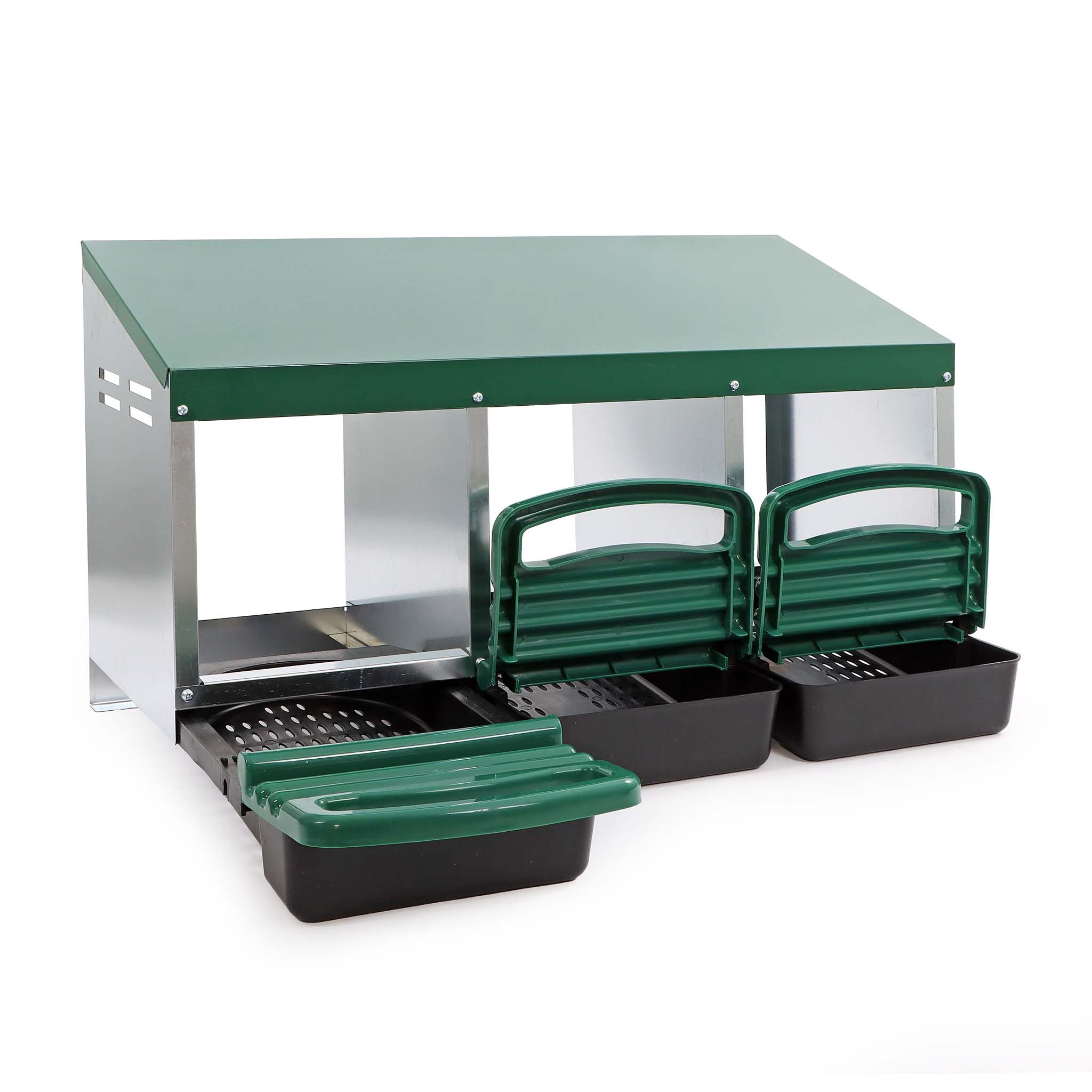 Aménager l'intérieur d'un poulailler pondoir pour le bien-être des poules – La jolie poule pondeuse Nichoir Poule Pondeuse IKLOB® Pondoir à Poule Vert 2 Compartiments - Pour La Ponte De 8 à 9 Pondoir Vert 54x52x47 【Montage facile】Ce nichoir compact est facile à assembler et peut être placé n'importe où dans le poulailler pour la couvaison, ce qui en fait un choix pratique pour les aviculteurs. Description du produit Présentations : Offrez confort et sécurité à vos volailles grâce à notre pondoir à 3 compartiments, conçu pour satisfaire l'instinct naturel de couvaison des poules, canards et autres volailles. Sa conception adaptée aux poules et ses protections facilitent la collecte des œufs tout en assurant le confort de vos poules., Spécifications : 1., Dimensions hors tout : 54 x 52 x 47 cm (L x l x H) 2., Dimensions du couvercle : 55 x 34,5 cm (L x l) 3., Dimensions du compartiment : 33 x 27 cm (L x l) 4., Dimensions du plateau inférieur : 33 x 25,5 cm (L x l) 5., Matériaux : acier, plastique 6., Poids net : 5,5 kg Contenu : 1 nichoir à poules à 2 compartiments Mode d'emploi Facile à installer et prêt à l'emploi Le pondoir des poules permet de collecter facilement vos œufs depuis un espace dédié à la ponte, ceci évite de les chercher partout dans le jardin, sous le poulailler ou toute autre cache que cherche une poule pour y pondre tranquillement 【Construction durable】Fabriqué en acier et en plastique, ce nichoir est résistant aux intempéries et durable, garantissant une longue durée de vie à votre élevage. Ce pondoir, adapté aux poules, offre un espace de ponte sûr et privé, garantissant ainsi leur sécurité. Fabriqué en acier robuste et en plastique durable, il est conçu pour résister aux intempéries, ce qui en fait un atout essentiel pour votre poulailler L'intérieur spacieux accueille facilement les poules de toutes tailles. Fabriqué en acier robuste et en plastique durable, il est conçu pour résister aux intempéries, ce qui en fait un atout essentiel pour votre poulailler.