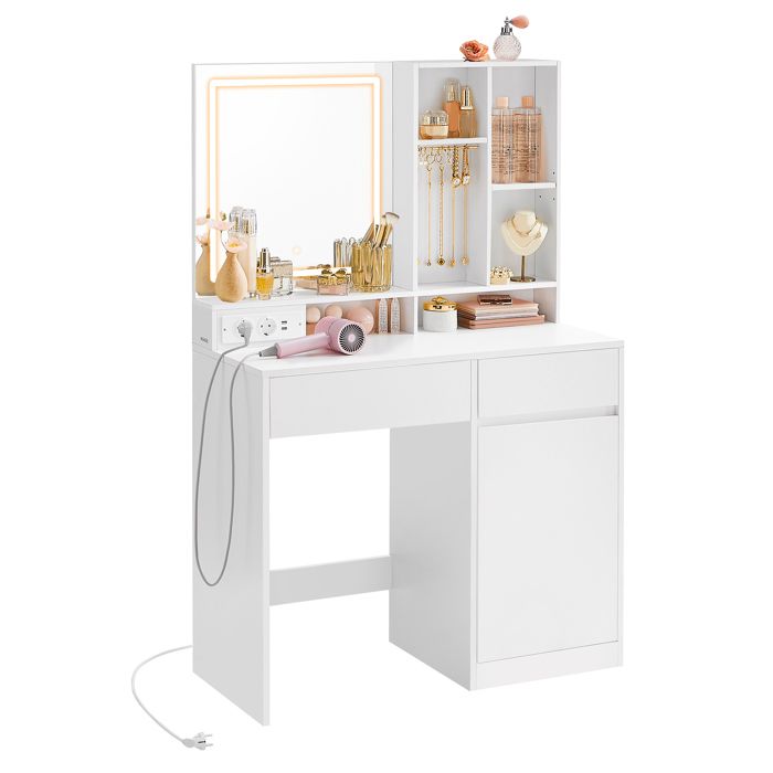 Coiffeuse Lilli avec tabouret et LED Les tiroirs supplémentaires sous la surface de table vous offre assez de place pour tous vos articles de beauté. Avec plus de 130 spécialistes et 6 succursales dans le monde entier, nous sommes synonymes de solutions de produits à large bande et d'idées de meubles exceptionnelles avec un caractère de bien-être. La table de maquillage Lilli est la bonne décision pour toutes les amoureuses de beauté. Équipement Tabouret : ( Hauteur d’assise : 52 - 67 cm (ajustable) | Diamètre de la surface d’assise : 33,5 cm | Diamètre des pieds : 38,5 cm | Poids : 4,7 kg | Matériau : Armature en acier chromé , housse de siège en similicuir ) Coiffeuse Lilli avec tabouret et LED Les possibilités d'extension individuelles sont illimitées. DIMENSIONS : La Coiffeuse avec tabouret mesure 190 cm - Largeur, 90 cm - Hauteur, 39 cm - Profondeur. Toutes les tailles détaillées sont indiquées sur les photos Coiffeuse Meuble Coiffeuse Avec Miroir Et Tabouret Vicco Coiffeuse Blanc/Sonoma Coiffeuse Pas Cher Fonctionnalités Cette coiffeuse devient alors un compagnon fidèle longtemps. DIMENSIONS : La Coiffeuse avec tabouret mesure 190 cm - Largeur, 90 cm - Hauteur, 39 cm - Profondeur. Son design optimal s'adapte à chaque maison pour un look stylé et un plaisir d'utilisation convivial. Matériau : Aggloméré, 16 mm, revêtement en résine mélaminé Coiffeuse Rangements Tiroirs Tabouret Vicco Coiffeuse Lilli, Blanc, 135cm Avec éclairage LED | Leroy Merlin Tabouret Coiffeuse Vicco Coiffeuse Emma, Blanc, 120cm avec éclairage LED | Leroy Merlin Le tabouret design, le banc confortable ou la guirlande lumineuse LED de style hollywoodien pour n'en citer que quelques autres produits. Les meubles que nous développons en Allemagne allient des exigences élevées de design avec une fabrication rentable et une qualité des matériaux de qualité supérieure. Caractéristiques techniques Coiffeuse Couleur : Blanc brillant Depuis plus de 15 ans, nous sommes l'un des plus grands détaillants en ligne d'Europe et des spécialistes passionnés dans le domaine du mobilier et de la décoration intérieure. Tout est à sa place. La meuble coiffeuse possède de nombreux compartiments fermés et une construction robuste.