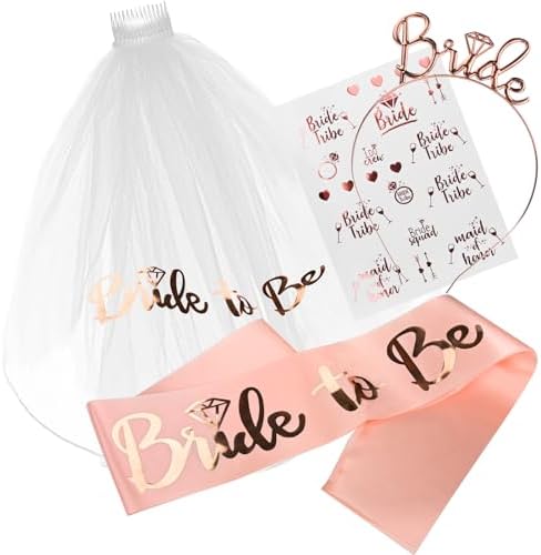Écharpe Bride to Be et diadème de mariée : l'écharpe de mariée et d'équipe est fabriquée en satin avec lettrage doré, doux et lisse au toucher, et le diadème de mariée est fabriqué en alliage métallique, lettres de mariée sur le dessus et design en forme de diamant, il est léger à porter. Écharpe et diadème Bride to Be d'excellente qualité, ensemble d'écharpe Team Bride - Contenu : voile de mariée blanc avec peigne, écharpe de mariée blanche, 6 écharpes noires pour mariée d'équipe, diadème de mariée or rose, tatouage temporaire de mariée et de mariée. Utilisation polyvalente : que ce soit pour un enterrement de vie de jeune fille, un enterrement de vie de jeune fille, des fiançailles, un mariage, un enterrement de vie de jeune fille, etc. Écharpe « Bride To Be » Pour Enterrement De Vie De Jeune Fille Diademe Tatouage Denterrement De Vie De Jeune Fille Voile C'est l'accessoire de mariée parfait pour rendre la mariée très spéciale et glamour le jour de son grand jour. Enterrement de vie de jeune-fille – Escale Détente Décoration Bachelorette Lot De 3 Accessoires « Bride To Be » Avec Bandeau, écharpe Et Voile Pour Enterrement Voile Mariée Diadème EVG Konsait Bridal Diadème Mariage Tiare avec Cristaux Strass Bride to be...