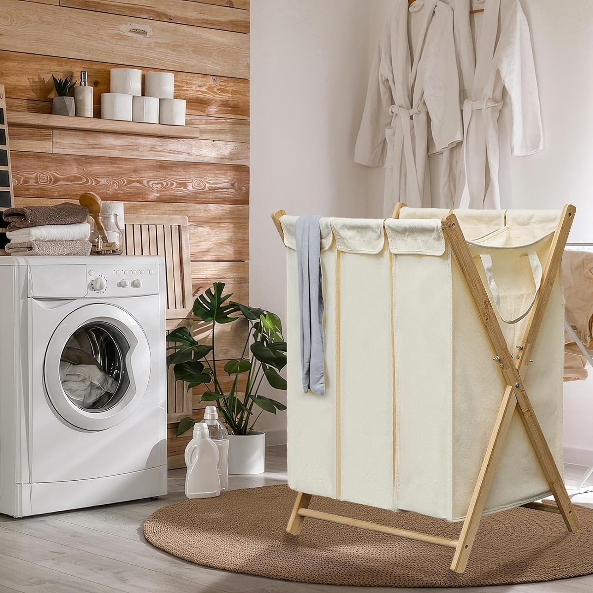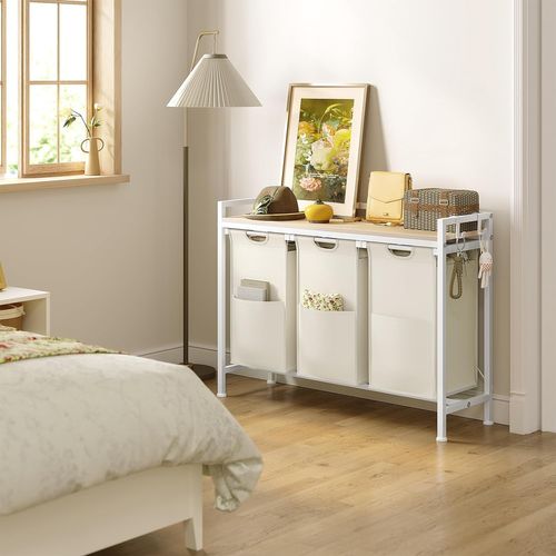 Panier à Linge, 3 Compartiments, 100 L, Roulettes, Beige Naturel, Gris Collecteur Linge étagère 150l Qingxian Panier à Linge 3 Compartiments En Tissu Oxford De Qualité Meuble Panier A Linge Il peut être placé dans la salle de bain, le salon, la chambre à coucher et d'autres scènes. Par rapport à d'autres marques, il a une plus grande capacité et un meilleur rapport qualité/prix. 【Sacs à linge - extensibles & amovibles】Soutenus par une base en plastique, les sacs ne s'affaissent pas et ont des fermetures velcro pratiques, vous pouvez donc facilement les tirer ou les enlever pour amener le linge à la machine à laver. Panier à linge 3 compartiments superposés amovibles • Le Comptoir du Panier 【Robuste, stable et durable】La boîte à linge est fabriquée en tubes d'acier de 2 x 2 cm et en MDF de haute qualité. Dans la salle de bain, la buanderie ou la chambre, ce panier à linge s’intègre aisément à votre intérieur et crée un espace de rangement supplémentaire exactement là où vous en avez besoin 【Rangement multifonctionnel】Il peut ranger aussi bien les vêtements sales que propres, mais aussi les jouets, les petites affaires, etc. 【Avec des poches latérales et des rangements】Le collecteur de linge est équipé de poches latérales très pratiques pour les chaussettes, les sous-vêtements ou les chiffons, etc.