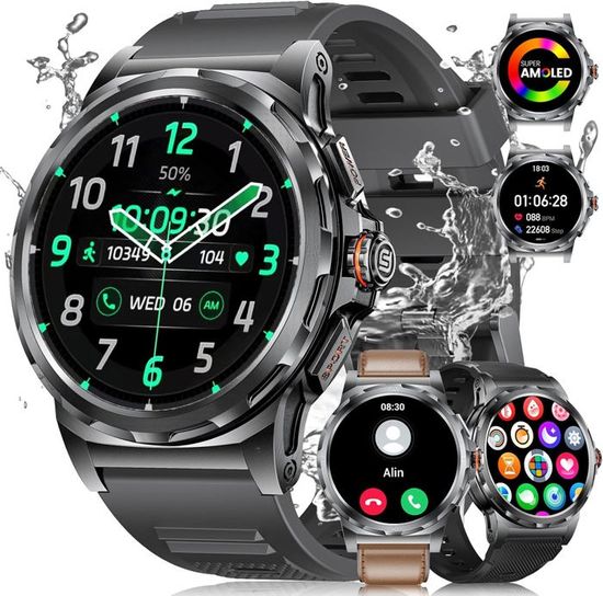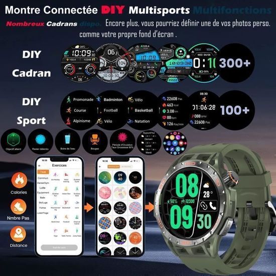 Montre Connectée Homme Militaire, 1,39 Ips Smartwatch Avec 400Mah Grande Batterie Ip68 Étanche