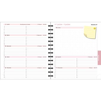 Né dans les Vosges, fabriqué en France et pensé pour vous ! La spirale facilite l'ouverture et la mise à plat de l'agenda. Agenda Dodo & Cath Humoristique Exacompta - 2004533E - Agenda Semainier De Bureau SAS 20S Lady Color Agenda Oxford 2026 Spirale Exacompta - 1605036E - Agenda semainier de poche Lady 16S spiralé CONCEPTION : 7 jours de la semaine (rdv par heure, de 8h à 20h) avec une grille du temps à l'horizontale et une grande surface de note PAGES SPECIFIQUES : les calendriers semestriels et planning mensuel de l'année en cours et de l'année suivante, fêtes à souhaiter et infos pratiques VISUALISATION ET ANTICIPATION : le calendrier mensuel sur 2 pages vous permet de visualiser le mois à venir (sous forme de cases) afin de faciliter votre organisation. Les + : impression en couleur sur papier blanc Clairefontaine, emplacement mémo et grand espace de note, coins détachables et pochette transparente Lady18S - Calendario en espiral Dodo & Cath, 15 x 17 cm, calendario semanal de enero a diciembre de 2026. Con Dodo & Cath el año transcurre con humor y un bonito gráfico Certifications : PEFC (fibres de papier issues de forêts gérées durablement) - Imprim'vert (impression respectueuse de l'environnement). Agenda de bureau Lady 18S spiralé Dodo & Cath 15 x 17 cm Semainier Janvier à Décembre 2026 Avec Dodo & Cath, l'année se passera avec humour et un joli graphisme. L'atout supplémentaire : au début de chaque mois, un calendrier mensuel sur 2 pages pour visualiser le mois à venir (sous forme de cases) et s'organiser au mieux.