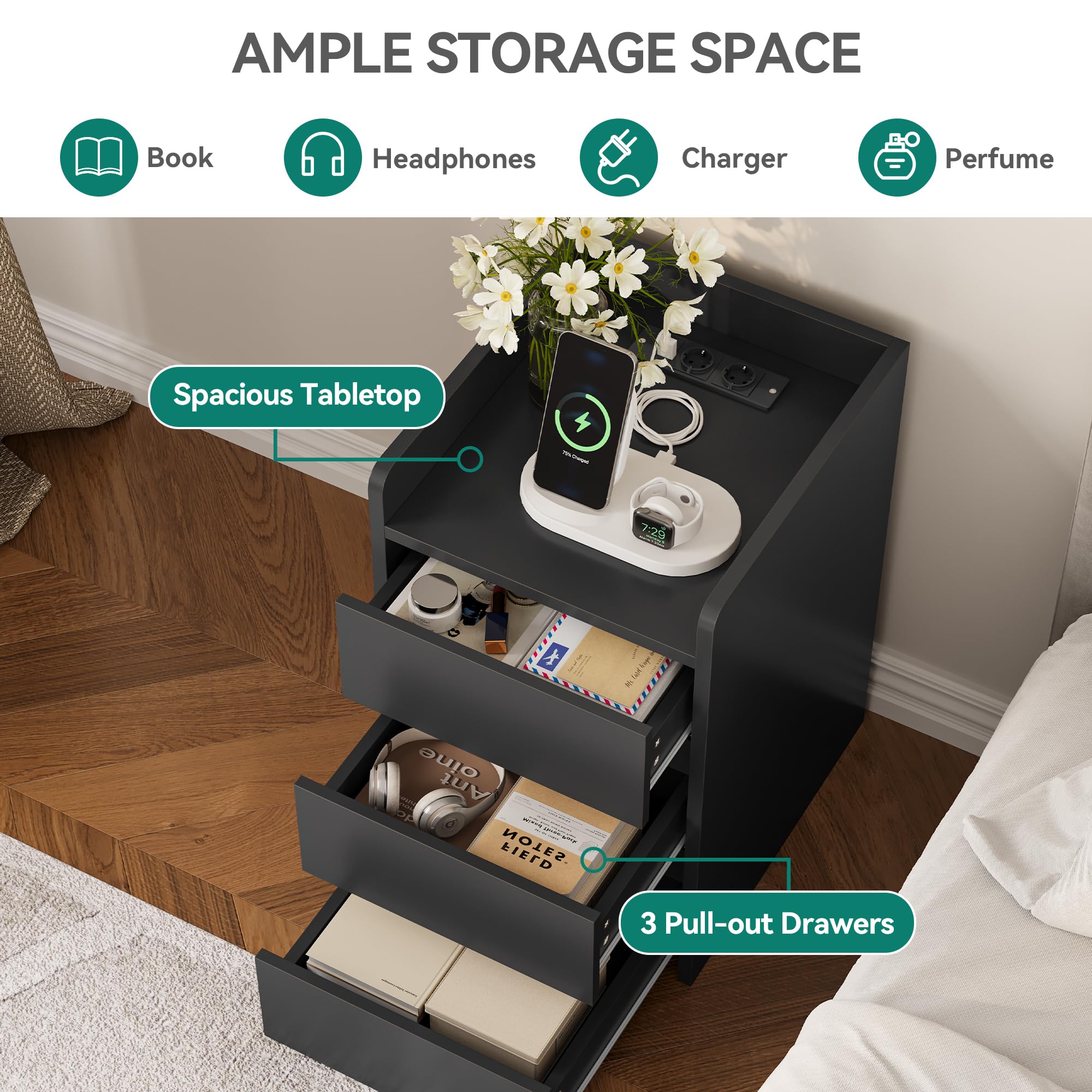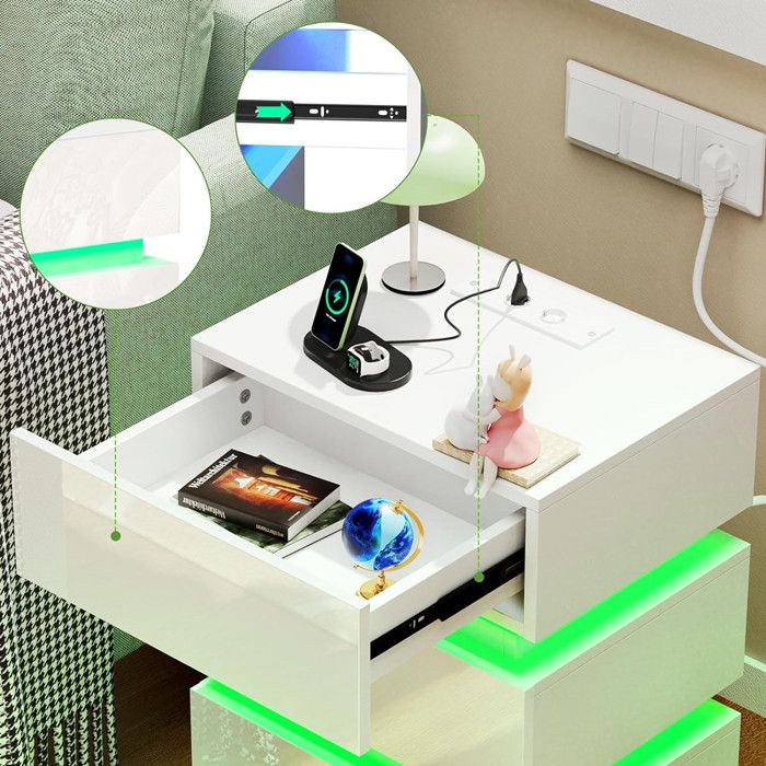 Apparence élégante:Les tables de chevet présentent un design contemporain qui s'harmonise facilement avec n'importe quel décor de chambre à coucher. Table basse - Table d'appoint - style industriel avec étagère Réglez la couleur des voyants LED en fonction des besoins., Il constitue également un excellent choix pour une commode à trois tiroirs dans la chambre à coucher, une armoire de rangement dans le dressing ou comme table d'appoint et table basse dans le salon. Sa construction robuste offre stabilité et soutien pour vos objets essentiels de chevet. Table de chevet LED:Dotée d'une bande lumineuse LED d'un mètre de long, cette table de chevet offre 16 options de couleurs LED distinctes contrôlables à l'aide d'une télécommande. Réglez la luminosité et les modes d'éclairage selon vos préférences, créant ainsi une ambiance chaleureuse dans votre chambre à coucher pour des nuits paisibles et reposantes. 10€ sur SoBuy® FBT107-PF Table Basse avec 2 Tiroirs en Tissu Table d... 1 Avec éclairage LED 2 Trois tiroirs 3 Hauteur libre spacieuse Lot de 2 Table de Nuit en aggloméré | Style Contemporain | Table de Lot 2 Tables De Nuit Modernes PIPIPOXER Table De Chevet LED Avec 3 Tiroirs, 16 Couleurs Lumières, 4 Modes De Luminosité Pour Chambre à Coucher, 35x40x55cm, Blanc Meuble Chambre Rangement Lumineux Des lignes épurées, une esthétique minimaliste et une palette de couleurs neutres garantissent la polyvalence de cette table de chevet, qui s'adapte à divers styles d'intérieur. Équipée d'un éclairage réglable pour créer un environnement confortable propice à des nuits reposantes. Table de chevet blanche Cette table de chevet est équipée de trois tiroirs spacieux de différentes tailles, pouvant répondre à la plupart des besoins de rangement et de présentation dans la maison. Les tiroirs anti-poussière sont parfaits pour ranger des objets du quotidien tels que des livres, des magazines et des écouteurs, tandis que le plateau généreux offre suffisamment d'espace pour y placer un réveil, des plantes en pot ou des accessoires décoratifs afin d'améliorer l'esthétique générale.