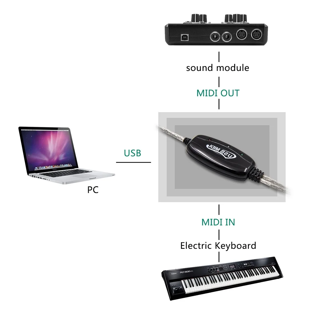 Kingwing® Nouveau Clavier 2M vers PC Convertisseur de câble USB MIDI PC to Music Cordon de Interface Clavier Synthé Vers PC Connecteur De Câble MIDI Vers USB Adaptateur De Clavier Musical PC Vers Interface MIDI Vers USB Compatibilité élevée : cet adaptateur de contrôleur de prise filaire est adapté pour XP, pour Vista, pour 7, pour 8., 1, pour 10, pour OS X. Comment utiliser : 1., Connectez le câble marqué IN à la prise MIDI OUT de votre clavier MIDI (ou périphérique MIDI) 2., Connectez le câble étiqueté OUT à la prise MIDI IN de votre clavier MIDI (ou appareil MIDI) 3., Branchez le câble USB sur n'importe quel port USB libre de votre ordinateur et le voyant rouge s'allumera pour indiquer qu'il est sous tension., 4., Ouvrez votre logiciel de musique tel que Sonar, Connexions MIDI, etc., 5., Réglez les périphériques d'entrée et de sortie MIDI du programme musical sur Périphérique audio USB 6., Votre interface USB vers MIDI peut être utilisée maintenant 7., Pour éviter des problèmes potentiels, il est recommandé que cette interface soit toujours connectée au même USB qui a été initialement installé pour éviter l'installation de plusieurs pilotes. Liste des packages : 1 câble MIDI vers USB 1 x manuel d'utilisation TV Son Photo - Découvrez notre offre 5X Adaptateur de Convertisseur de Câble MIDI Vers USB PC Vers SynthéTiseur Adaptateur de Clavier Musical pour Home Music. Livraison gratuite à partir de 25€* | Paiement sécurisé | 4x possible | Retour simple et rapide En quelques minutes, vous pourrez jouer des chansons pendant qu'elles sont enregistrées sur votre PC. Spécifications du produit : Câble adaptateur MIDI vers USB Longueur du câble : 1,8 m Convient pour instrument et PC Connecteur A MIDI mâle Connecteur B MIDI mâle Connecteur C USB mâle Contenu de l'emballage : 1 câble adaptateur MIDI vers USB Contenu de l'emballage ci-dessus uniquement ; les autres produits ne sont pas inclus Entrée et sortie : cet adaptateur dispose de câbles d'entrée et de sortie MIDI ainsi que d'une prise d'interface PC USB. Spécification : Type d'élément : câble MIDI vers USB Matériau : ABS Prise : MIDI vers USB Longueur de ligne : env.