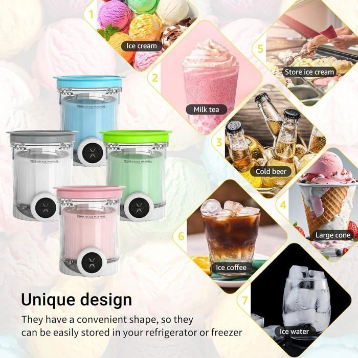 Matériaux de qualité alimentaire:Pot pour Ninja Creamy Deluxe est composé de matériaux de qualité alimentaire de haute qualité et peut supporter des températures de -30 ° C à 150 ° C; Le couvercle est fait de matériaux flexibles, avec un bon scellage, d'éviter les fuites et l'odeur, et la crème glacée est plus hygiénique Verschiedene Verwendungen:chaque récipient a une capacité de 680 ml, ce qui convient à la fabrication d'une variété de desserts congelés tels que de la crème glacée, de la boue de neige, des milkshakes, etc. Machine A Glace Ninja XUNIVERS 4PCS Pot Pour Ninja Creamy Deluxe,680 ML Récipient Pour Ninja Creamy Deluxe680 Ml Recipient Pour Ninja Creami Pour Nc500 Nc501bacs A Creme Glacee Avec Couvercl Ninja Creami s'il vous plaît assurez - vous que cela ne vous dérange pas avant d'acheter, merci geeignet ist spécifications: couleur:Bleu, rose, vert, jaune Matériel:Plastique taille:27x25x13cm contenu de l'emballage: 4 Pièces Pot pour Ninja Creamy Deluxe Veuillez noter que des erreurs de 0 à 1 cm peuvent survenir en raison de la mesure manuelle. Le couvercle prend en charge l'empilement, la sauvegarde de l'espace de stockage, la cuillère est mince et anti-rust, facile à stocker le tiroir, et la cuisine est plus propre et plus sans souci Conçu pour Ninja Creamli NC500 / NC501: Cet ensemble de conteneurs est conçu pour les modèles pour Ninja Creami Ice Cream Cream Maker NC500 et NC501, des modèles non universels, veuillez confirmer le modèle de l'appareil avant d'acheter pour assurer une correspondance parfaite Der Deckel besteht aus flexiblen Materialien mit guter Versiegelung, verhindern Leckage und Geruch, und Eiscreme ist hygienischer Jeder Behälter hat eine Kapazität von 680 ml, was für eine Vielzahl von gefrorenen Desserts wie Eiscreme, Schneeschlamm, Milchshakes usw. Lot de 4 pintes Ninja Creami Deluxe - NC500 NC501 pour machine à crème
