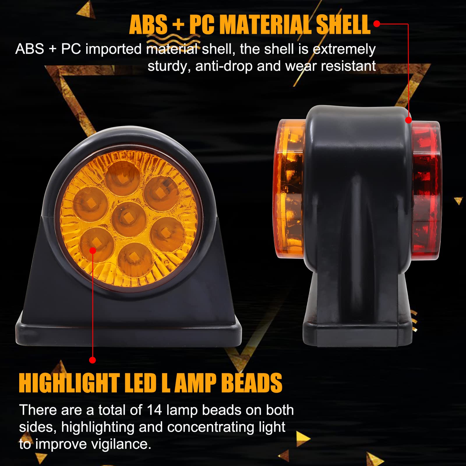 2 PièCes SéRies Camion Remorque LED Lampes 24V Feux de Position LatéRaux de Voiture Signal D AIPER 6 X Feux De Position Latéraux à LED Orange 12V 24V, Feux De Position Avant, Feux De Position Lateraux A Led Orange 12v 24v Feux De Position Avant Feux De Position Lateraux Feux De Position Lateraux A Led Pour Voiture Remorque Camping Car Caravane Moto Moteur 87545343 Grâce à la richesse de l'apparence et de l'utilité, montre une présence claire même dans l'obscurité, parfait pour la décoration de camion! Présentation du produit Nom du produit: lumière latérale d'écart de LEDTaille de l'article: environ 170 * 65 * 18mm Tension correspondante: 12V / 24V Matériel de coloration: matériel de résine d'ABS Classe imperméable à l'eau: ip68 Spécifications: pack de 4 Couleur de l'article: Rouge, jaune, blanc, bleu, vert Étapes d'installation: ligne noire - négative, ligne rouge - lumière rouge, ligne jaune - lumière jaune, ligne blanche - lumière blanche, Ligne bleue - lumière bleue, ligne verte - lumière verte Véhicules applicables: convient à la plupart des camions 12 / 24V, remorques, camions, bus, RV, véhicules industriels, voitures, RV et autres véhicules [Haute luminosité] Feux de Position Lateraux de camion adopte des perles de LED, avec une luminosité ultra - élevée, une fréquence ultra - basse, une meilleure dissipation de chaleur. Feu de gabarit latéral rouge/blanc pour camping-car HELLA Feux latéral camion diffuse également une lumière vive sur les routes de nuit noire, non seulement pour maintenir sa présence, mais aussi pour éviter tout contact avec d'autres véhicules. Lot de 10 feux de gabarit latéraux à LED rouges - 12-24 V 9 LED étanches pour remorque, camion, camping-car, bateau, camping-car, fourgonnette - Feux de gabarit avant/arrière,feux de position durables [Large application] Convient à la plupart des camions 12 / 24V, remorques, fourgonnettes, autocars, camping - , véhicules industriels, voitures, camping - et autres véhicules. [Lmperméable à l'eau] feux de position led camion peut être imperméable à l'eau, la conception entièrement scellée peut être meilleure imperméable à l'eau et à la poussière, dans la neige lourde, la pluie lourde, la lumière de poussière lourde mauvais temps peut fonctionner correctement, assurer votre sécurité de conduite, avoir une longue durée de vie.