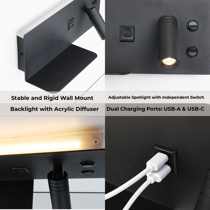 Liseuse Tete De Lit YNDD 2 Pièces Applique Liseuse LED Tete De Lit, 3W Lampe De Lecture Murale Avec Port USB, Prise Et Interrupteur, Flexible Col De Cygne Lumière En Aluminium, Lampe Applique murale LED rechargeable Magnetics, noir, USB, détecteur de Applique murale LED de type « liseuse » avec bras articulé orientable de 3W et veilleuse 6W. 4.Station de charge USB rapide : elle vous permet de recharger vos appareils mobiles sans avoir besoin de prises supplémentaires. Vous pouvez les laisser sur l'étagère en aluminium. Forfait inclus: 1 x Applique murale LED en aluminium Remarques: Les couleurs peuvent varier en raison des différents moniteurs, veuillez comprendre Lampe De Chevet Murale Moderne Applique De Lecture Led Avec USB E-lamp Tete De Lit Disponible en blanc et en noir.