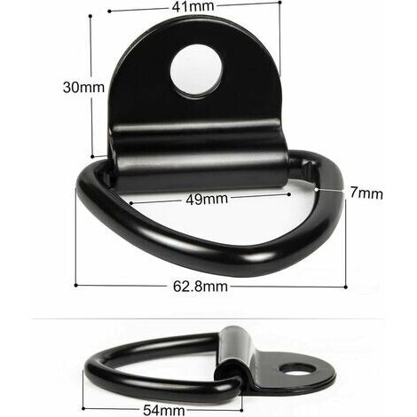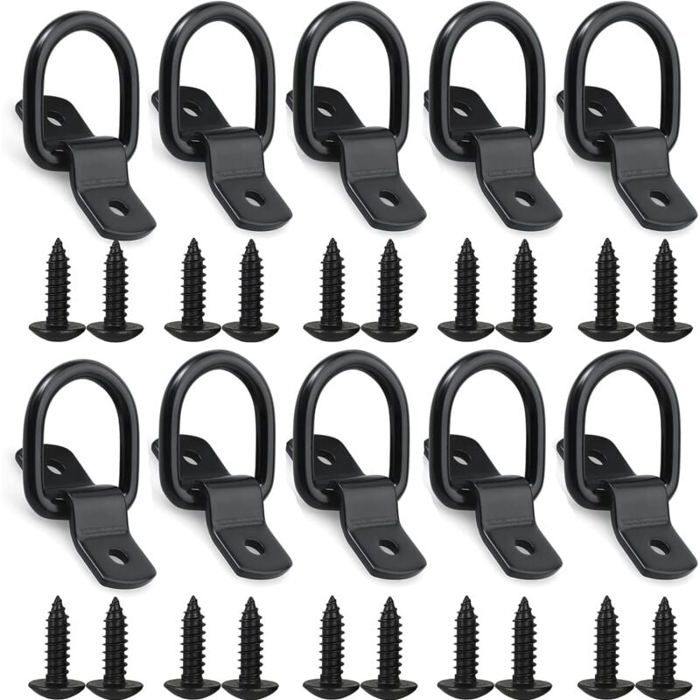 Caractéristiques : 1., Trous antidérapants pour une installation plus sûre Le diamètre du trou de vis est précis et le crochet se fixe fermement sur une surface en bois ou en métal avec des vis M5 standard. Contenu de l'emballage]Le paquet contient 8 anneaux de montage de pendentif en forme de D, qui peuvent fournir une connexion stable pour les articles attachés Il est résistant aux glissements et aux chutes, garantissant sécurité, stabilité et stabilité., 2., Gain de place et rangement optimisé Une fois installé, il ne prend pas de place. 【Capacité de Charge Élevée et Taille Compacte】: Chaque anneau en D noir pour remorque supporte jusqu'à 400 kg et offre un point d'ancrage sûr pour cordes, tendeurs ou sangles d'arrimage. 【Kit d'Installation Complet】: Livré avec des anneaux en D robustes et 16 vis M5 x 25 mm. Anneaux D'arrimage En D 8 Pcs Anneaux D'arrimage - Anneau Arrimage En V - Anneau D'arrimage En D Ancrage - Cochet D'ancrage V-Ring Pour Remorques Camion Voitures Bateaux Kayak - Noir Charge 450 KG Crochet Pour Remorque Les crochets d'arrimage pour remorque peuvent être utilisés avec des accessoires tels que des cordes et des filets pour fixer efficacement des objets et organiser le transport et le stockage., 3., La conception du point d'ancrage en D améliore l'efficacité du transport. Dimensions : 4,5 x 4 x 0,6 cm. Diamètre du trou : 7 mm ; taille des vis : M5 x 25 mm. La structure classique en D et le crochet en arc facilitent l'insertion et la fixation rapides de la corde, améliorant ainsi l'efficacité du transport. Lot de 6 Anneaux d'Arrimage Noir Inoxydable 400kg avec Vis et Supports - Crochets en D pour Remorques, Voitures, Camions | Leroy Merlin 【Construction en Acier au Carbone】: Fabriqués en acier au carbone haute résistance avec un revêtement antirouille noir, ces crochets d'arrimage à anneaux en D offrent une durabilité et une résistance à la corrosion exceptionnelles pour une performance durable. Anneau d'arrimage en D : robuste et haute dureté, ne se déforme pas et ne se casse pas facilement, peut être largement utilisé dans la plupart des véhicules, ancrages d'arrimage de camion