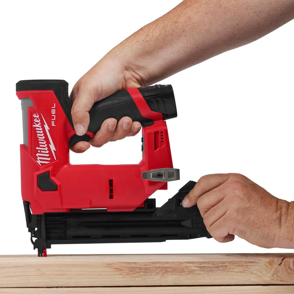Système de batterie rétrocompatible : fonctionne avec toutes les batteries MILWAUKEE grâce à la charge d'une cartouche, il permet d'enfoncer des clous d'ancrage dans des matériaux durs (comme l'acier ou le béton) ou semi-compacts (comme le bois ou l'aluminium). Le chargeur peut contenir jusqu'à 110 clous pour une productivité maximale Pas de cartouche de gaz, ni entretien nécessaire, le cloueur a été conçu pour une excellente performance et une grande autonomie. Pistolet à Clous Sans Fil Calibre 18 Cloueur De Finition 15G 18V FUEL M18 FN15GA-0X (machine Seule) | 49 M12 FCN18GS 202X Cloueur de finition Milwaukee 18V M18 FN16GA-0X | Castor Bleu Cloueur droit M12 Fuel™ 2 batt chargeur | Milwaukee Nouveautés M12 FUEL Milwaukee : des performances de pointe, une compacité et une durabilité inégalées - Zone Outillage
