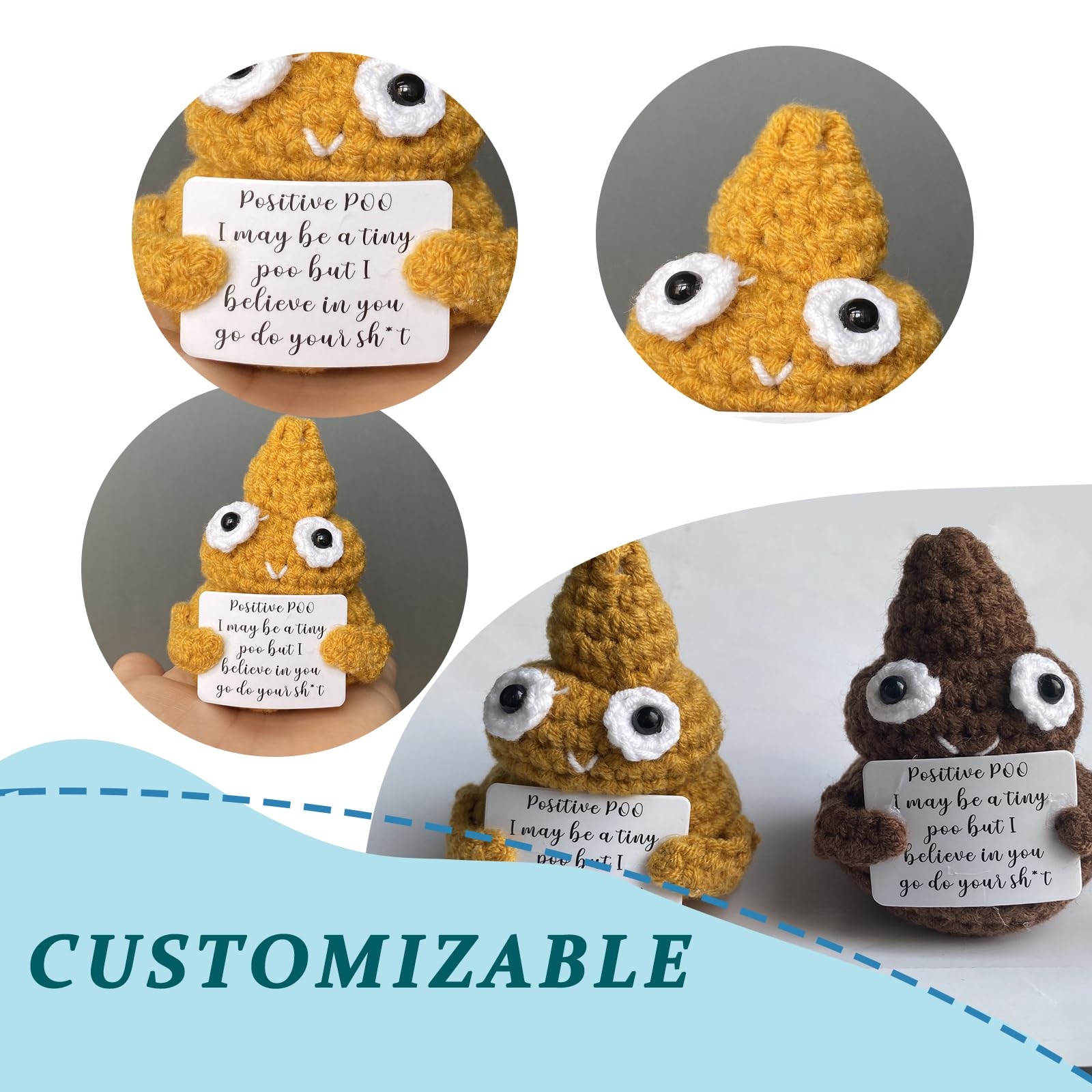 Description du produit La peluche Popo Positive est une petite peluche créative qui combine humour et confort. Voici la peluche Caca Positif, le plus petit coach motivationnel que vous n’aurez jamais eu ! Derrière son look adorable et décalé se cache un message plein de bienveillance (et d’humour) pour rappeler une chose essentielle : vous pouvez le faire Conçue pour apporter un sourire, elle est parfaite comme cadeau pour des amis, des collègues, ou des proches qui traversent une période difficile. Elle est résistante et peut être utilisée pendant longtemps Facile à transporter et légère, elle peut être emportée partout pour ajouter une dose de positivité à tout moment Cadeau Femme Popo Positif Cadeau Drôle Popo Positif - Peluche Humoristique En Crochet - Cadeau Drôle Et Motivant - Message "Je Crois En Toi" Decoration Chambre Elle est particulièrement idéale pour des occasions comme les anniversaires, les départs en retraite ou comme cadeau d'encouragement. Utilisez cette peluche comme élément décoratif au bureau, dans une chambre ou lors d'événements pour apporter une ambiance joyeuse et pleine d'humour Taille Compacte Et Pratique: Animaux en peluche Petite mais pleine de charme, cette peluche mesure 6,5 x 9 cm. Cadeau Positif Et Amusant: La peluche Popo Positive est le cadeau parfait pour remonter le moral et apporter de la chaleur à vos proches. XXL OURSON EN Peluche Géant, Jouet En Peluche, 100-300 Cm, Beige Clair Offrez-la en cadeau d'anniversaire, en cadeau de départ, ou pour encourager quelqu'un dans une période difficile Gorro De Peluche Multicolor Rainbow Caca Popo Emoticon