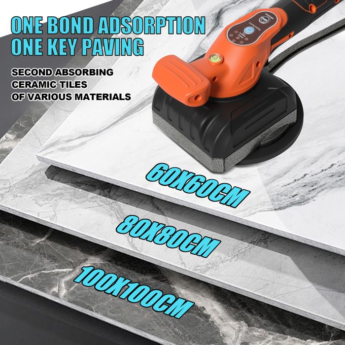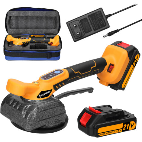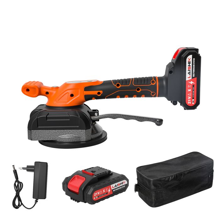 Machine de nivellement de carreaux en céramique, M... – Grandado Absorption améliorée : équipé d'une ventouse en caoutchouc haute résistance avec une large surface de contact jusqu'à 60 à 150 cm, ce qui garantit une prise ferme et stable sur des surfaces plates, lisses et non poreuses. Ventouse Vibrante Carrelage Machine De Nivellement Pour Carrelage Sans Fil 21 V 130 Mm Ventouse 0-13500 Tr/min Avec 2 Piles, 5 Vitesses Réglables, Haute Capacité De Charge, Ventouse Agrandie Avec Niveau à Batterie : 2 pièces, batterie au lithium de 1300 mAh. La vitesse de vibration est réglable sur 5 niveaux de 1000 à 13500 tr/min et est indiquée par des lumières LED. Batterie rechargeable et polyvalence : alimenté par une batterie au lithium de 21 V de 1300 mAh et par différentes précautions de sécurité pour des performances de longue durée. Kit de nivellement pour carrelage BELLOTA - Système Push&Level 1mm... Machine à vibrations pour carrelage, batterie au Lithium haute Contenu de la 1 machine à carreler 2 piles 1 chargeur., 1 étui Moteur puissant et vibration réglable : un moteur puissant produit des vibrations à haute fréquence qui améliorent l'efficacité du travail et obtiennent un effet de carrelage uniforme et plat. Fréquence de vibration : 1000 – 13500 tr/min Taille ventouse : 130 mm Champ d'application : 60-150 cm.