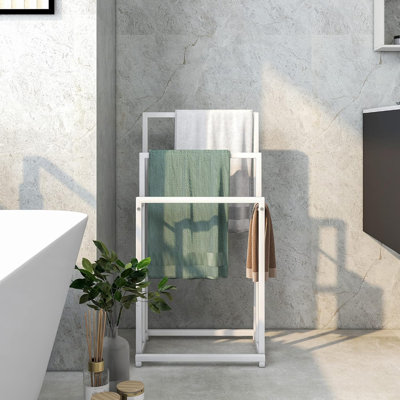 Sa conception sans perçage ni fixation murale protège vos murs et permet une installation rapide et sans contrainte pour une utilisation immédiate. MyGift Porte-serviettes autoportant Ladder et Commentaires - Wayfair Canada LES + PRODUITS Structure solide et stable, Gain de place , Conception à 3 niveaux MONTAGE FACILE ET SANS PERÇAGE : Ce porte-serviettes moderne s’installe en quelques minutes. Léger et autonome, il se déplace sans effort et trouve naturellement sa place dans une salle de bain, une chambre, ou une buanderie. Dimensions : 45x22x86cm, Couleurs : Blanc, Poids : 3., 1kg GAIN DE PLACE : Que votre salle de bain soit spacieuse ou plus compacte, ce porte-serviettes optimise l’espace disponible. Porte-serviettes sur pied, 99 c de haut, porte-serviettes de salle de... Son pied est équipé de 4 patins antidérapants qui garantissent une stabilité parfaite, même sur des surfaces lisses comme le carrelage, tout en protégeant votre sol des rayures. Relaxdays Porte-serviettes CURVY, 3 barres, en métal (acier), HLP Rebrilliant Porte-serviettes autoportants de 40 po de hauteur pour salle de bain, porte-serviettes de sol à 3 niveaux avec panier de rangement, échelle de séchage pour serviettes et présentoir pour grande serviette Un simple coup de chiffon humide suffit pour éliminer la poussière et les éclaboussures, sans effort ni entretien particulier. Que votre salle de bain soit spacieuse ou plus compacte, ce porte-serviettes optimise l’espace disponible. Son design vertical minimise l’encombrement au sol et s’adapte facilement à côté de la douche, de la baignoire ou du lavabo, offrant un aménagement plus fonctionnel et un espace plus épuré et organisé. Avec ses 3 barres de hauteurs différentes, ce porte-serviettes favorise une bonne circulation de l’air, accélérant le séchage et limitant l’accumulation d’humidité et les mauvaises odeurs. Léger et autonome, il se déplace sans effort et trouve naturellement sa place dans une salle de bain, une chambre ou une buanderie.
