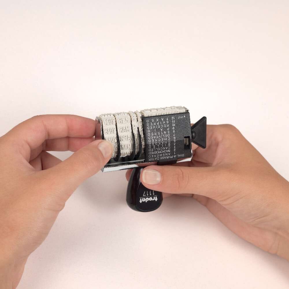 La hauteur de caractère de la date est de 5mm et sa zone de marquage mesure 5x32mm. Idéal pour un usage occasionnelLe tampon dateur 1020 Trodat à encrage séparé est à la fois petit et léger. Le changement de la date se fait facilement et rapidement grace aux molettes de réglage. Dateur Encrage Séparé Tampon Dateur Trodat 1010 - Format 4x26mm, Date En Français, Encrage Séparé Trodat 1010 Date Français Tampons Trodat de haute qualité : Achetez Trodat dateur à encrage séparé - 5mm 1020 dans le premier magasin en ligne tampons-bureau., fr! Numéroteur à encrage séparé 6 chiffres - Tampons du Mail Tampon Bureau Date TRODAT Dateur 1020 à Encrage Séparé - Acheter Papeterie Tampon Oeuf Date Alimentaire Ce tampon dateur à encrage séparé Trodat 1020 permet de marquer la date sur vos documents. Le réglage de la date se fait facilement grâce aux molettes. La largeur de l'empreinte est de 32 mm sur une hauteur de 5 mm. 100% des clients recommandent ce produit