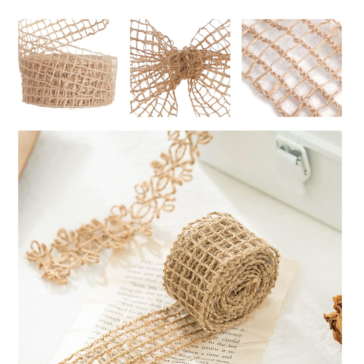 Bobine de ruban,Ruban en toile de Jute naturelle 2 m-rouleau, rubans en tissu de Jute rustique Ruban De Jute Naturel Lot De 9 Rubans En Jute Naturelle Respectueux De L'environnement Pour Emballage Cadeau, Décoration De Mariage Rustique Et Décoration De Noël Pour Fêtes Britanniques (jardin De Campagne/style Bohème Rouleau De Jute Vintage EN STOCK : Sollbry 5 Rouleaux de Ruban Jute dentelle, Ruban Toile de Jute Blanche, Décoration Rustique - Jute Rouleau Toile de Jute, Parfait pour l'Artisanat, de Mariage, l'Emballage Cadeau, SO009761WYJOS pas cher. Livraison rapide partout en France Ce que vous obtenez] : vous recevrez 5 rouleaux de ficelle de jute naturelle avec feuilles artificielles, chaque rouleau mesure 10 m de long. Ces feuilles de ruban en toile de jute sont disponibles en 5 couleurs différentes, vous pouvez choisir la couleur que vous aimez décorer. Différentes couleurs, assez de longueur et quantité suffisante de rubans en toile de jute sont...