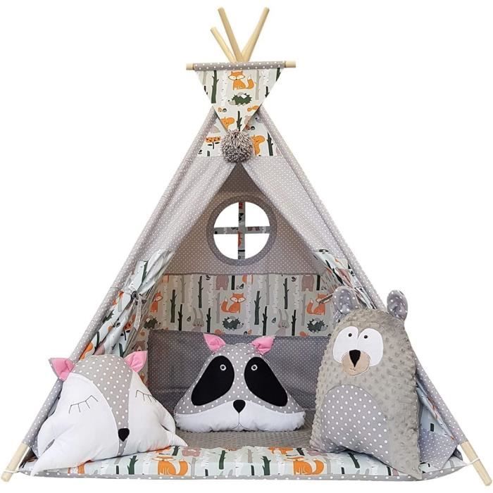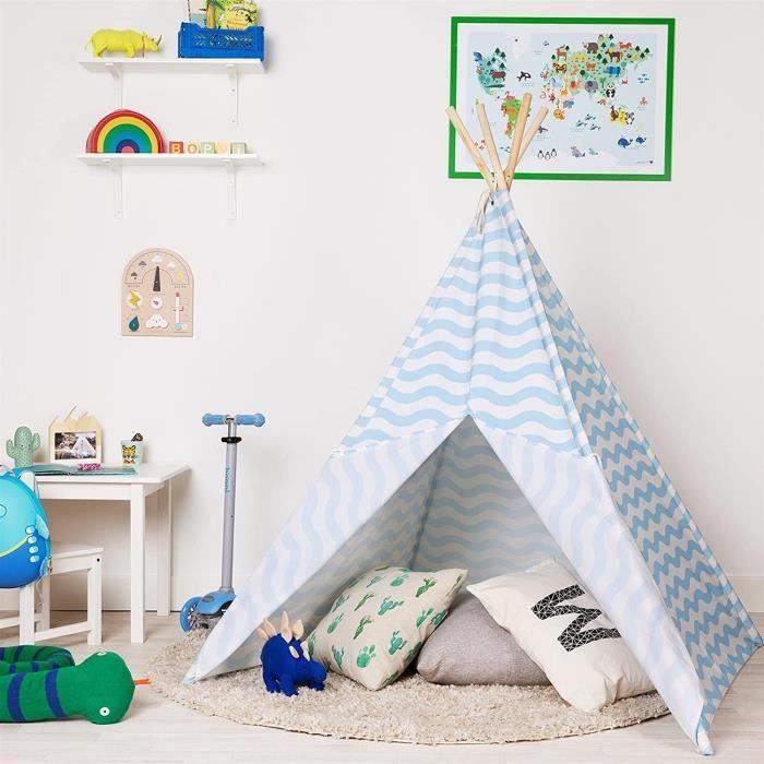 Tipi Chambre Fille Izabell® Tente De Jeu, Tipi, Pour Enfants - Pour L'intérieur Et L Tente De Jeu Tipi Les bâtons en matériau naturel – bois, lisse et sûr – 8 pièces reliées par un connecteur en métal, très stables. La surface au sol est de 1,10 m x 1,10 m. Notre tipi ne tombe pas lorsque vous jouez sur un enfant. En outre, une poche est fixée sur la paroi arrière pour que vos petits puissent cacher leurs trésors. Le set comprend 3 coussins, 1 tapis, un ballon suspendu avec pompon (article de décoration)., Certifié Öko-Tex Standard 100 La couverture du tipi est remplie d'une polaire épaisse et hypoallergénique. Sur la fenêtre se trouve également un rideau qui permet aux petits de se cacher. Le tipi est fabriqué en tissu 100 % coton certifié Öko-Tex et non tissé minky. Test du tipi Izabell : tente de jeu pour enfant Vous pouvez retirer le rembourrage et laver le tapis. Tente tipi, 120 x 120 x 160 cm, avec boule de feutre, pour l'intérieur, plusieurs couleurs, en toile, tipi, tente de lecture et salle de jeux, tente pour enfant (bleu Grâce au stabilisateur, vous avez une garantie de sécurité. le stabilisateur qui empêche la tente de se replier. Le tissu est composé à 100 % de coton et les baguettes sont en bois Rempli de non-tissé épais hypoallergénique sur le dessous avec du coton sur le dessus gris minky. La tente grise avec ajout de couleur menthe – comme sur la photo, animaux colorés de la forêt, fabriquée en tissu 100 % coton. (Le montage est comme sur la photo à côté). Tente Tipi Pour Enfants | Vecteur Premium la tente tipi avec un cadre de dimensions d'environ 110 cm de hauteur après ouverture., 150 cm. La tente est maintenue ensemble par des tiges en bois robustes.