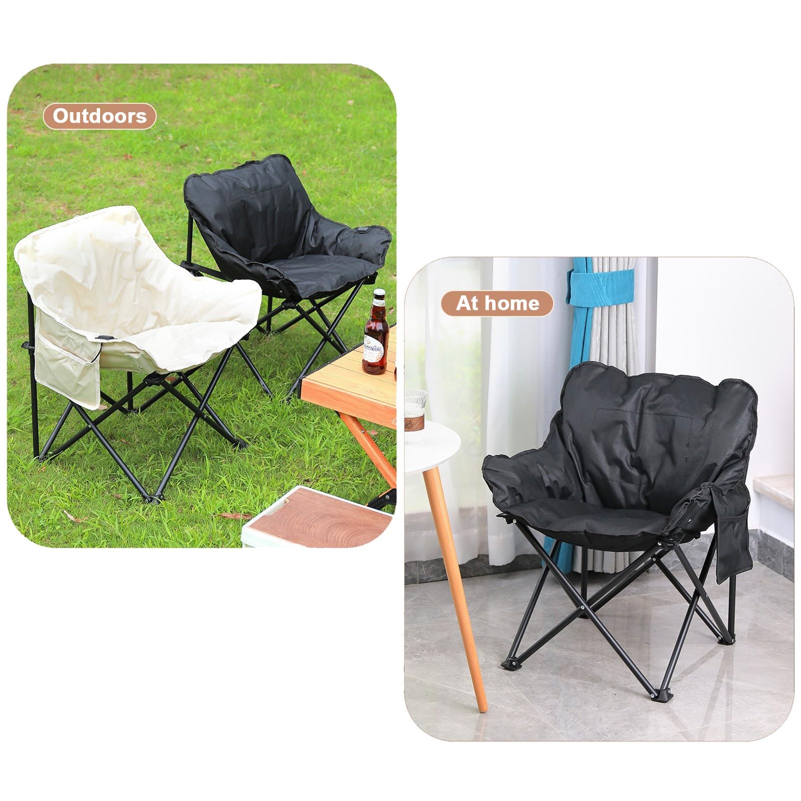 Sunnyfeel Chaise De Camping Chauffante à Bascule Pour Adultes, Chaise De Camping Rembourrée De Luxe, Chaise Pliante Surdimensionnée, Chaise De Pelouse D'extérieur (gris Chauffant