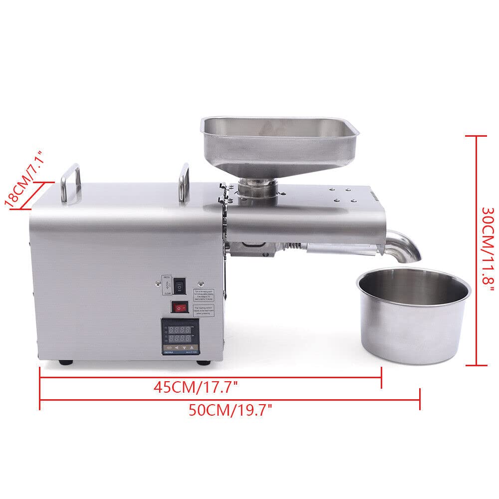 Profitez de l'huile pressée à la main, un style de vie nutritif. EN STOCK : Presse à huile électrique 750W, machine à huile automatique, presse à huile en acier Ino acciaio, Taux d'extraction 98%, froid / chaud Extracteur pour comme les arachides, les noix, les graines, 19970428547 pas cher. Livraison rapide partout en France Utilisation : ce produit convient à la plupart des graines avec une teneur en huile de plus de 25 %, telles que les arachides, les noix, les graines de sésame, les petits morceaux de noix de coco, les amandes, les graines de lin, les graines de tournesol, les graines de thé, le soja et les graines de périlla. Le design sans balais garantit l'absence d'entretien. 【Entretien sans tracas】: Grâce à sa surface lisse, sa structure simple et son design amovible, vous pouvez facilement essuyer la saleté avec un chiffon doux ou rincer à l'eau. 【Conception humanisée】 : la chambre de pressage épaisse évacue la chaleur rapidement, presse uniformément. La tige de pression en acier inoxydable haute résistance est résistante à l'usure, durable. Qu’est-ce que l’huile de CBD pressée à froid ? CBD SHOP FRANCE pCouleur : argenté Style : moderne Forme : rectangle Matériau : acier inoxydable Procédé : revêtement Montage requis : oui Source d'alimentation : électrique avec câble Type de prise : norme européenne Type de moteur : moteur sans balais /p Puissance : 750 W Tension : 220 V Plage de température : 40-240 ℃/104-464℉ Taille totale : 46*., 16 x 28 cm. Presse à huile automatique, 750 W Machine de pressage d'huile Taux Extraction Huile 98% Arachides Sésame Presses à Huile Machine Presse à Froid Huile De Graines Noires Presse à Presse Huile Maison Saine Restes d'huile comme nourriture pour le bétail, pour les plantes, les céréales, le marinage des poissons. 1 * Manuel en anglais Tous les accessoires pour l'installation Remarques 1., En raison de la nature du lot des produits, il peut y avoir de légères différences de couleur et de motif entre les gants et les brosses livrés avec les produits. Veuillez lire attentivement le manuel d'utilisation avant utilisation à travers. Portez une attention particulière aux consignes de sécurité fournies. 【Pressage à froid et à chaud】 : ce produit prend en charge la pression à froid et à chaud pour l'extraction de l'huile (jusqu'à 98 % de taux d'extraction).