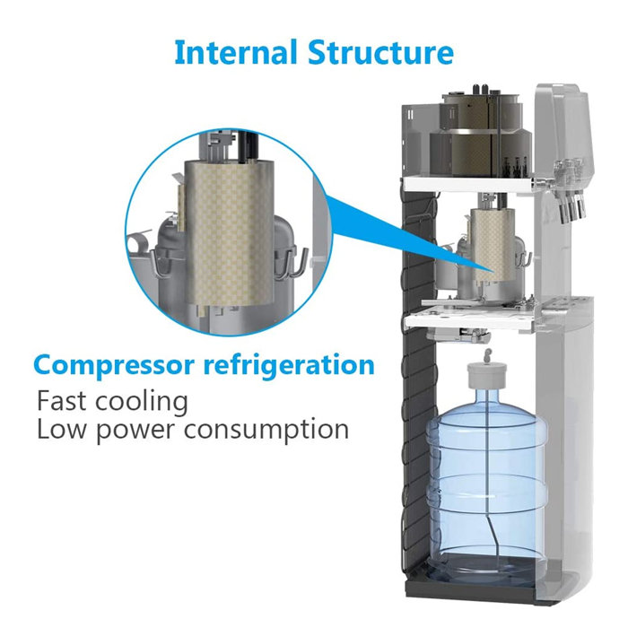 Distributeur de refroidisseur d'eau à chargement par le bas, chaud et froid, pour la maison, le bureau, le café, le bar à thé, le dortoir- Modèle : distributeur d'eau chaude caché. Explorez notre gamme de distributrices d'eau. Des modèles pratiques pour une hydratation facile à la maison ou au bureau - Température de l'eau froide : 15°C-Puissance totale nominale : 620 W- Température ambiante : 10°C-38°C- Matériau du corps chauffant : acier inoxydable 304., - Température de l'eau chaude : 90°C- Puissance de chauffage : 550W- Puissance de refroidissement : 70 W- Humidité ambiante : 90 %- Poids net : 9,5 kg- Consommation d'énergie : économe en énergie, seulement 2 à 3 kWh d'électricité par semaine- Taille de l'emballage extérieur : 35,5 x 33,5 x 103,5 cm. La même technologie est appliquée au système de chauffage, vous permettant de chauffer facilement votre eau (≥95°), particulièrement utile en saison hivernale. Convient pour une utilisation à la maison, au bureau et en dortoir. Distributeur d'eau à chargement par le bas, refroidisseur d'eau chaude et froide avec 3 becs de température, indicateur de bouteille vide, verrouillage de sécurité enfant, acier inoxydable, noir, utilisation à la maison Le forfait comprend :1 x distributeur d'eau au sol1 x manuel d'installationBénéficiez d'un accès rapide et facile à de l'eau rafraîchissante avec ce distributeur de refroidisseur d'eau fiable et fonctionnel. 【Verrouillage de sécurité enfant】 Libérez simplement le verrou situé au-dessus du bouton de distribution et profitez d'une eau chaude apaisante au bout de vos doigts. Soyez assuré que votre sécurité et celle de vos proches est entre vos mains. Restez hydraté tout au long de la journée avec une eau à température idéale à portée de main. Avalon Refroidisseur D'eau Autoportant à Chargement Par Le Haut Avalon Avec Temperature Chaude Froide Et Ambiante En Noir Avlo1030 【Refroidissement et chauffage électroniques efficaces】 Utilisant une technologie de refroidissement électronique avancée, ce distributeur d'eau garde votre eau fraîche (≤ 15 °) pendant les journées torrides d'été. Fonctions multiples pour une utilisation pratique] Conçu pour plus de commodité, ce distributeur d'eau peut accueillir de l'eau en bouteille de 4,5 à 20 L et différentes tailles de seaux grâce à sa capacité de chargement par le bas