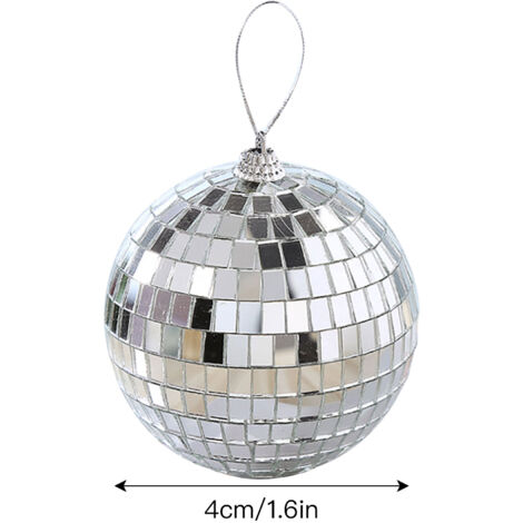 Boule disco à suspendre, boules disco argentées à suspendre avec corde, petites boules miroir de fête, boules réfléchissantes pour fête, Noël, décoration d'arbre de Noël Caractéristiques : Matériau : mousse et paillettes., Couleur : argenté. Wanfoou Lot de 54 boules disco à suspendre pour bar, fête, accessoires de scène, décorations d'intérieur, fêtes de Noël et fournitures (2/3/4/5 cm) Vers Amazon La boule disco miroir dispose d'une couleur sphérique et argentée avec une surface à paillettes miroir, ce qui en fait une pièce décorative personnalisée pour présenter une décoration élégante et passionnante lors d'une fête. {Égayez l'atmosphère} : les boules miroir sont idéales pour les centres de table, les décorations de gâteaux, les festivals musicaux, les fêtes d'anniversaire, Noël, les pistes de danse, etc. Vous pouvez les accrocher au bon endroit selon vos besoins et préférences Boule A Facette Relaxdays Mini Boules Disco, Lot De 50 Accessoires à Facettes, Déco, Diamètre De 3 Cm, à Boules Disco Suspendues 20 boules disco de 2 cm., Remarques : 1., Les mesures étant prises à la main, les tailles indiquées peuvent varier légèrement., 2., La couleur peut varier légèrement en raison des différents affichages de l'écran., 3., Étant donné que la boule à facettes se compose de nombreuses paillettes, certaines paillettes peuvent tomber pendant le transport. Bien qu'ils ne puissent pas être accrochés, ils sont très faciles à transporter avec une petite taille et un poids léger. Plusieurs occasions : les boules disco peuvent être utilisées pour décorer des fêtes sur le thème de la musique, des mariages, des remises de diplômes, des anniversaires, des fiançailles, des danses scolaires et d'autres festivals et célébrations. {Matériau de qualité} : la boule disco est fabriquée en mousse avec des paillettes argentées à l'intérieur, stable, légère, réfléchissante et incassable, et réutilisable pour une longue durée de vie Lot de 2 ini boules disco ulticolores pour fêtes - Luières disco portables à LED activées par Design scintillant : cette boule disco est capable de pivoter et de refléter le miroir sur sa surface. Boule À Facettes,Boule Disco pour la fête,Boules Disco,6 Pièces Argent Boule à Facettes Disco...
