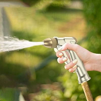 Choisissez entre brume, ventilateur, creux, jet ou douche, chacun parfait pour une gamme de tâches allant de 10 à 20 mètres de distance. * Matériau de haute qualité : fabriqué avec un corps en alliage d'aluminium galvanisé durable et une interface plaquée cuivre, ce pistolet pulvérisateur résiste à la corrosion et est conçu pour durer. Large application : le pistolet d'arrosage haute pression dispose de 4 méthodes de pulvérisation, peut être utilisé pour le lavage de voiture, l'arrosage du jardin, le nettoyage du sol/balcon et d'autres endroits auxquels vous ne pouvez pas accéder, peut être très bon pour répondre à vos différents besoins Buse de tuyau d'arrosage améliorée ] Pistolet pulvérisateur de buses de tuyau d'arrosage haute performance Fabriqué en métal et plastique ABS, le plastique ABS avec sa résistance à la corrosion garantit que les trous de pulvérisation de cette buse de tuyau en métal ne rouillent pas, la buse de pulvérisation à tête en laiton n'est pas facile à casser. en cas de chute... * Pistolet d'arrosage réglable : débit d'eau réglable -- répond à tous vos besoins. Buse en Laiton, Pistolet d'Arrosage de Jardin, Tuyau d'Eau pour Lavage de Voiture La boucle économe en main d'œuvre peut être fixée à la poignée du pistolet de jardin, ce qui permet d'économiser du temps et des efforts. * Large gamme d'utilisation : pulvérisateur haute pression avec poignée pistolet dans plusieurs modes de pulvérisation pour laver votre voiture, arroser les plantes et les fleurs dans votre jardin et pelouse, nettoyer l'allée, nettoyer le sol/balcon/verre et partout où vous ne pouvez pas vous approcher, peut même être utilisé pour la douche de vos animaux de compagnie et chiens, répond à vos différents besoins d'arrosage et de nettoyage. Nettoyeur haute pression Lance Tuyau d'arrosage Pistolet de pulvérisation Buse métallique Pistolet de lavage haute pression 360 Eau rotative pour l'ensemble de lavage de voiture Arrosage des animaux de compagnie Nettoyage de Sa construction de haute qualité garantit l'absence de fuites, de rouille ou d'usure, offrant une alternative supérieure aux modèles en plastique standard. Caractéristiques : Pression de l'eau : brume fine, pulvérisation modérée, jet fort Matériau de l'interface : alliage et cuivre. Diamètre du filetage : 1,9 cm., Couleur : argenté.
