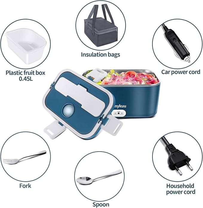 Réchauffe Plat Boîte à Repas Chauffante 1,2L Isotherme Lunch Box Electrique Amovible Boîte Repas Chauffante 【Parfait pour le Travail & Loisirs】La boîte repas électrique sans fil est un cadeau idéal pour les ouvriers du bâtiment, les chauffeurs de camion, les employés de bureau et les amateurs de plein air. Boîte Chauffante Repas 1.8L 70W Lunch Box Électrique 3 En 1 Pour... La lunch box chauffante 3 en 1 est un accessoire pratique pour les repas à emporter. Avec une capacité de 1,2 L, elle est conçue pour réchauffer vos plats à la maison ou en déplacement grâce à ses alimentations 220V, 12V et 24V ⚡ 【Fonction de Chauffage Intelligente & Batterie Performante】 Capacité de 1., 2L pour repas complets Réglage intelligent de température en 4 niveaux Fonction de chauffage programmable en 7 intervalles Batterie 21 000 mAh pour une autonomie longue durée Contenu amovible en acier inoxydable (304) La boîte-repas électrique avec fonction de maintien au chaud est votre solution parfaite pour des repas chauds où que vous soyez, à tout moment! 【Veuillez Noter】Sans Fourchette & Cuillère. Boîte Chauffante Repas 2 en 1 Lunch Box Chauffante Electrique 220V 12V Convient pour Voiture La boîte à lunch avec batterie chauffe automatiquement et maintient la température - votre repas est prêt à l'heure et à la température idéale., 【Grande Capacité 1., 2L】La boîte repas 1., 2L pour adultes offre de l'espace pour des menus complets comme saucisse curry avec frites, sandwiches ou viande avec légumes. 🍱 【Capacité Parfaite de 1., 2L pour Repas Complets】Notre boîte-repas chauffante électrique avec batterie offre un espace idéal pour votre déjeuner ! 🎁 【Cadeau Idéal pour le Travail & les Loisirs】Cette boîte-repas électrique sans fil est le cadeau parfait pour les ouvriers du bâtiment, les chauffeurs de camion, les employés de bureau et les amateurs de plein air ! Un cadeau pratique pour tous ceux qui attachent de l'importance à un repas chaud ! La boîte-repas chauffante permet de savourer des repas chauds sur le chantier, au bureau ou en déplacement. 【Contrôle Intelligent du Timer & Température】Choisissez entre 6 niveaux de température et 5 réglages de temps. 【Batterie Puissante 21000mAh & Chauffage Rapide】La boîte repas électrique avec batterie réchauffe vos aliments rapidement et sans fil - parfaite pour les déplacements. 💧 【Lavable au Lave-Vaisselle & Nettoyage Hygiénique Facile】Le contenu en acier inoxydable robuste (304), le couvercle étanche et la cloison amovible sont entièrement détachables et lavables au lave-vaisselle.