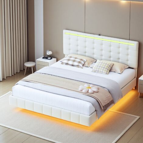 【Structure Robuste et Stable】Construit avec 12 lattes métalliques laquées, ce lit flottant peut supporter aisément jusqu’à 300 kg. 【Design Flottant Moderne】Ce lit plateforme présente un style flottant épuré qui crée un look contemporain et aérien. Améliorez votre chambre avec ce lit plateforme flottant moderne ! Son design flottant crée une allure contemporaine, donnant l’illusion que le lit plane délicatement Structure de Lit Flottant 200 x 160 cm... Nombre et type de rangements : Optimisation facile de l’espace: Avec une hauteur libre de 16,5 cm entre le sol et le cadre, ce lit LED intelligent gère efficacement le désordre et maximise l’espace de la pièce La structure triangulaire assure une stabilité renforcée, et les coussinets en mousse insonorisants minimisent les bruits de mouvement Lit capitonné 160 x 200 cm, cadre flottant capitonné avec éclairage LED et tête de lit design La base à lattes métalliques est compatible avec des matelas d’épaisseur comprise entre 20 et 30 cm Le design surélevé améliore la circulation de l’air et facilite le nettoyage en dessous COSTWAY Lit 160x200 Cm Design Flottant Avec Éclairage LED, Cadre De Lit Double Avec Sommier Et Tete De Lit Rembourree Reglable Multiprise 2 Prises 2 Ports Usb Controle Par App Assemblage Facile 82985317 【Éclairage LED Personnalisable】Le cadre de lit intègre des lumières LED RGB vibrantes en dessous, offrant une variété d’effets lumineux. Les bloqueurs empêchent le matelas de glisser tandis que les coussinets en mousse réduisent les bruits pour un sommeil tranquille. Caractéristiques : Pieds de support cachés qui donnent une apparence flottante au cadre Éclairage LED RGB fantastique pour une ambiance immersive dans votre espace de sommeil Télécommande avec portée efficace de 5 m pour une utilisation aisée 16 couleurs, 4 modes dynamiques et réglage en 10 niveaux de vitesse & luminosité pour un spectacle lumineux personnalisé 12 lattes métalliques laquées garantissant une forte capacité de charge Bloqueurs de glissement pour maintenir le matelas en place Grand espace sous le lit compatible avec la plupart des aspirateurs robots Spécifications : Couleur : Noir Matériau : Métal Dimensions globales : 200 x 160 x 24,5 cm (L x l x H) Hauteur sous le lit : 16,5 cm Épaisseur de matelas recommandée : 20-30 cm Distance effective télécommande : 5 m Capacité de poids : 300 kg Poids net : 16 kg Contenu de l'emballage : 1 x Cadre de Lit Flottant 1 x Télécommande (piles non incluses) 1 x Manuel d'Instructions