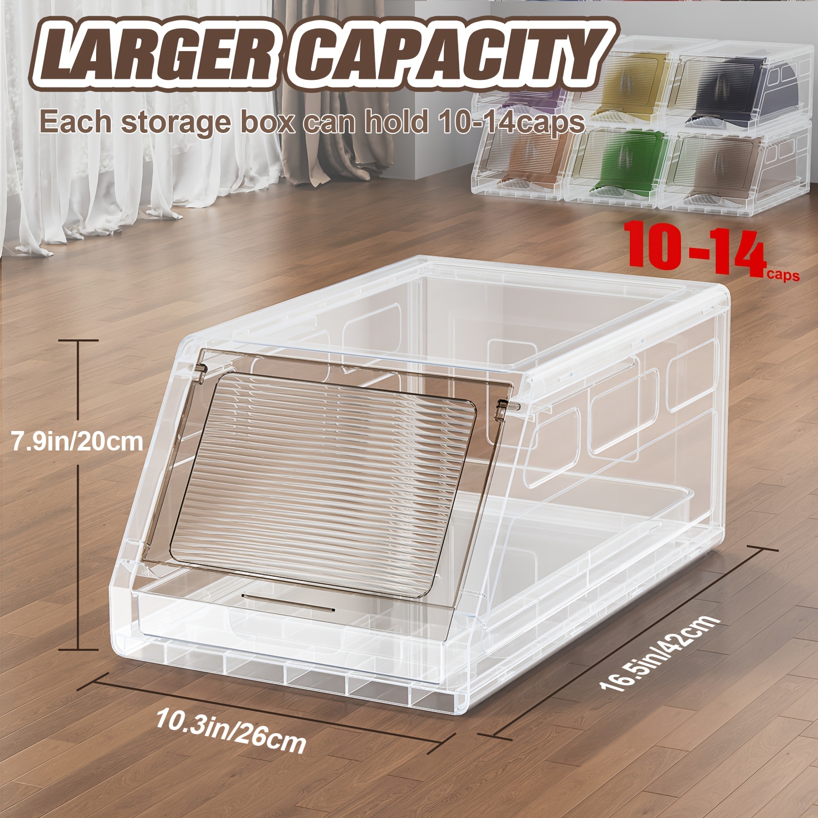 Idéal pour organiser n'importe quelle pièce, cet organisateur maintient l'ordre tout en gardant vos casquettes accessibles. Conçu pour garder vos casquettes bien organisées, il s'intègre parfaitement dans les placards ou peut être monté au mur. Sac De Rangement De Casquette De Baseball - Organisateur Du Chapeau Pour Placard | Conteneurs De Boîtes De Support Empilables Avec 24 Capacités | Conteneurs De Couvercle Transparent Pour La Solution D 1250€ Achetez 2 et obtenez 6 % de réduction Devant De La Casquette De Baseball Améliorez votre espace de rangement avec un design pratique conçu pour une utilisation quotidienne. Support de placard pour casquette de Baseball, porte-chapeau Identification facile du contenu: Organisateur de grands chapeaux Le couvercle très transparent offre une visibilité claire, garantir que vous pouvez rapidement localiser les éléments et améliorer l'efficacité quotidienne sans ouvrir l'organisateur Optimisation de l'espace: la solution de placard du chapeau atteint une utilisation maximale d'espace vertical avec une structure d'empilement modulaire, offrant des combinaisons flexibles et améliorant les scénarios de stockage dans les placards ou les pièces Boite A Chapeau Sac De Rangement à Suspendre Pour Casquettes De Baseball, 24 Poches Transparentes Boîte Organisatrice Casquettes Sport Collection Les boîtes sont empilables, optimisant ainsi l'espace dans les armoires et que vos casquettes restent propres. Ce produit peut contenir jusqu'à 24 casquettes, réduisant ainsi le désordre et offrant une solution pratique pour organiser vos collections de casquettes de manière ordonnée. L'organisateur de casquettes de baseball offre un grand espace de rangement avec un couvercle transparent pour une visibilité facile.