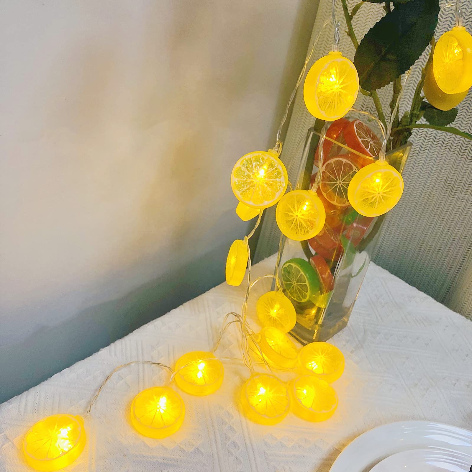 Alimentation USB pratique : le port USB rend la guirlande lumineuse indépendante des prises de courant et des piles. Flexibilité et polyvalence : le fil de cuivre de haute qualité est extrêmement flexible et peut être façonné à votre guise, que ce soit pour décorer une table, entourer des étagères ou créer une décoration murale créative. Guirlande lumineuse à piles Led pour noël, 1m, 2m,... – Grandado Tranche de Citron Vert - Guirlande Lumineuse Intérieur Résistance aux intempéries et durabilité : Particulièrement robuste et résistante aux éclaboussures (IP44), cette guirlande lumineuse convient aussi bien aux décorations intérieures chaleureuses qu'aux espaces extérieurs couverts comme les balcons ou les terrasses. Décorations lumineuses pour enfants | Canada Des matériaux de haute qualité garantissent un plaisir durable. Idéale pour les occasions festives, les soirées romantiques ou comme éclairage d'ambiance continu. USB Guirlande Lumineuse Décorative à Piles En Forme De Fruit Orange Citron Pour Fête De Noël, Camping, Décoration Extérieure Décoration Lumière Ambiante Sa structure fine et flexible offre des possibilités de création infinies pour vos idées décoratives personnalisées. Guirlande Lumineuse à Piles 3m - 20 LED Guirlande Citron - Décoration Lumineuse pour Jardin, Terrasse, Chambre, Mariage, Fête et Noël - Sans Piles Incluses (Orange) Design moderne et lumière agréable : cette guirlande lumineuse en forme de tranche d'orange diffuse une lumière chaleureuse et accueillante grâce à ses 20 LED blanc chaud sur une longueur de 3 mètres.
