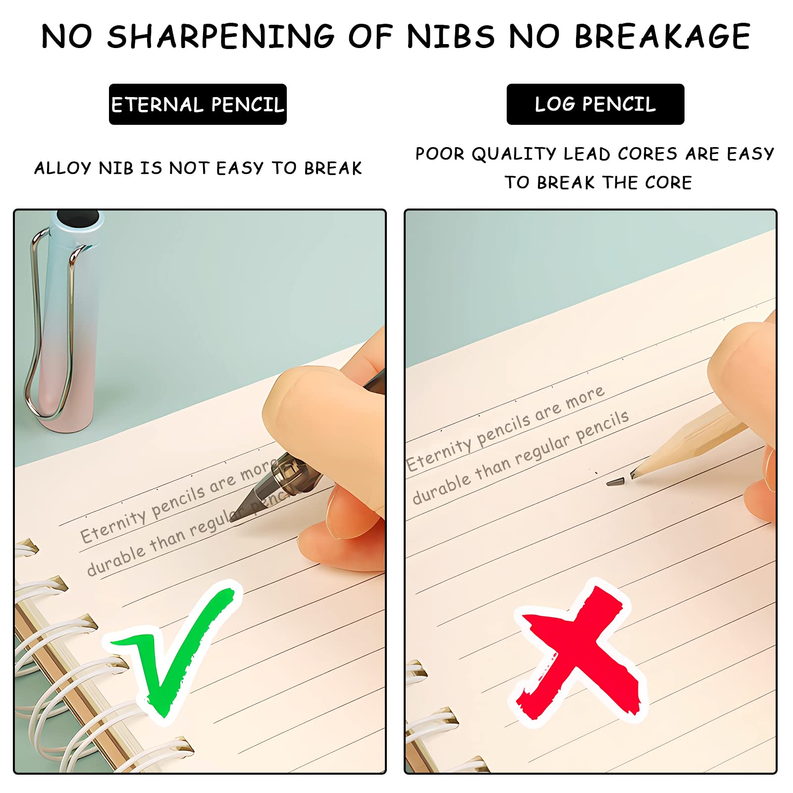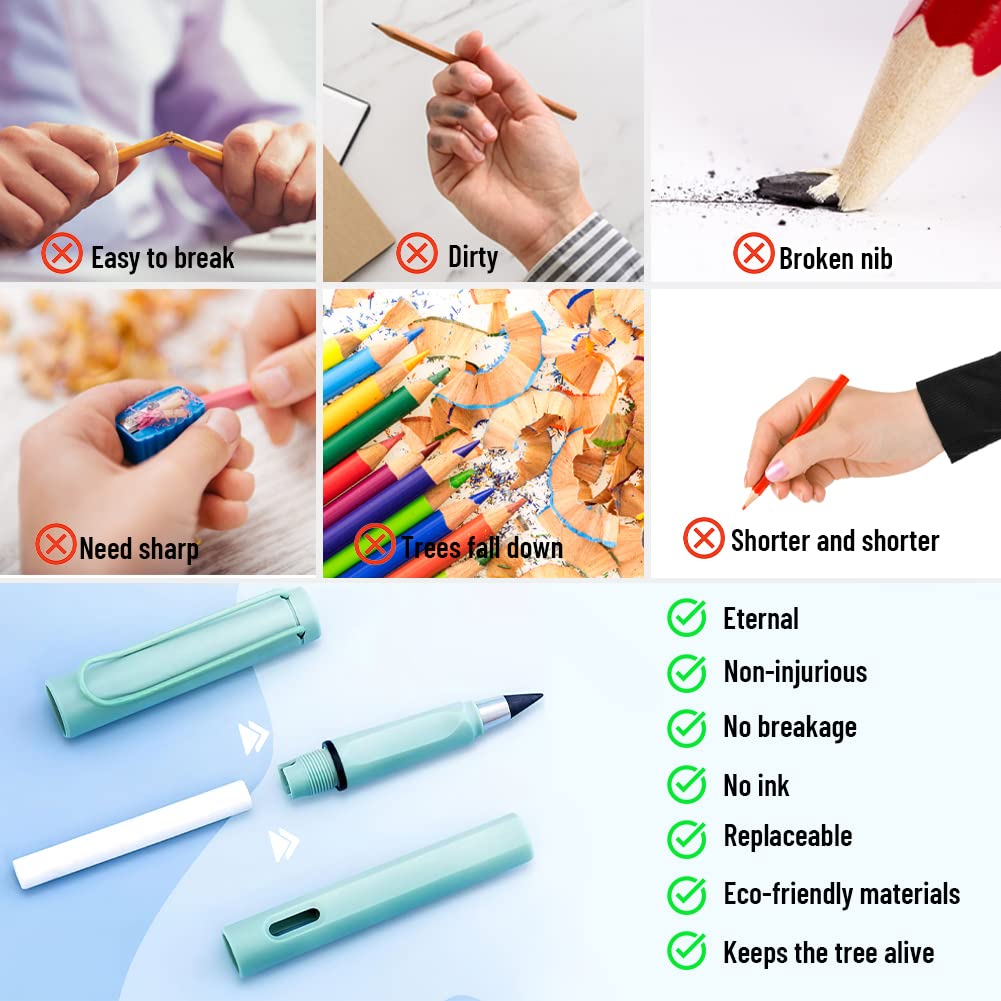 10 têtes de rechange pour crayons éternels. Matériau durable : fabriqué à partir de matériaux de haute qualité, écriture lisse, prise en main confortable, crayon de haute qualité pour écrire et dessiner.,Portable : pas d'affûtage d'un couteau, pas d'encre Pas besoin de tailler le crayon, pas de consommation de bois, pas d'écriture jusqu'au bout. Crayon A Papier TOPPLAYER 6PCS Crayons Sans Encre U00e9ternels, Crayon Infini, Stylo Sans Encre, Crayon U00e9ternel Portable Effau00e7able Ru00e9utilisable Pour Croquis Technique U00c9criture Dessin (2 Metal Pencil Caractéristiques: Matière : graphite Longueur : 14cm Couleur : noir, rouge, rose, jaune, bleu, vert Contenu du coffret 6 x crayon perpétuel Fournissez une écriture confortable sans avoir à vous soucier des gouttes d'encre. Il peut être utilisé à plusieurs reprises, la gomme peut être effacée et la pointe du stylet peut être remplacée. Quelles que soient la température ou les conditions météorologiques, il peut conserver l'écriture manuscrite pendant longtemps. Matériau durable : fabriqué à partir de matériaux de haute qualité, écrit en douceur, prise en main confortable, crayon de haute qualité pour écrire et dessiner Neikafan 24 Unids/Set Lápiz Eterno Sin Tinta 12 Lapiz Infinito con Punta de Reem Matériau durable : fabriqué à partir de matériaux de haute qualité, écrit en douceur, prise en main confortable, crayon de haute qualité pour écrire et dessiner. Design élégant : design élégant et sophistiqué. Crayon sans encre éternel : la pointe du crayon sans encre frotte sur le papier pour décomposer les molécules d'alliage métallique et les laisser à la surface du papier.