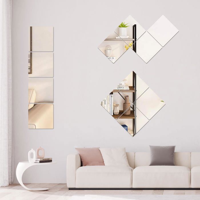 TOLOVIC Miroir Mural Autocollant En Verre HD - Carrelage De Miroir Autocollant - Miroir De Porte