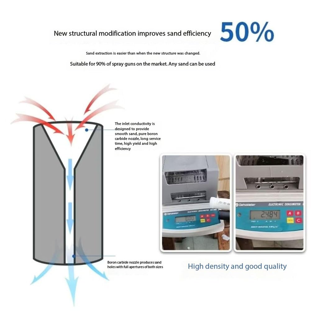 Contenu du package:1 * buse de carbure de bore Conseils sur la poudre de sable de carbure de boreTaille du produit: diamètre extérieur: 35 mm (l) * 20 mm (diamètre extérieur) * 6 mm (diamètre intérieur)Diamètre du bore en carbure de bore en option: 4 mm / 5 mm / 6 mm / 8 mm / 10 mm / 12 mm. BUSE EN CARBURE DE TUNGSTÈNE POUR PISTOLET DE SABLAGE EXTRA GRAND VOLUME Application: Nettoyage industriel Matériel: carbure Taille de la buse: personnalisable Plage de pression: 10-30 PSI Angle de pulvérisation: 30 degrés Motif de pulvérisation: Éventail plat La buse de souffle est en carbure de bore dure et léger, ce qui rend la pointe de la buse plus durable, plus durable et a une durée de vie plus longue que la céramique, le carbure de tungstène et d'autres matériaux! MICHELIN Buse de pistolet sablage MICHELIN Applicable à la machine de sableuse manuelle et à la machine de sableuse automatique en forme de boîte. Environ: longueur: 35/45/55/60/82 mm, diamètre extérieur: 15/16/20/21/25 mm, le diamètre intérieur du trou est 4/5/6/7/8/9/10/12mm. Pièce Rechange Sablage Buse De Station De Soudage Buse De Pistolet à Chaleur 6 Pièces Buse Carbure De Bore Sableuse Couleur: noirDensité: ≥2,46 g / cm3Micro-valeur: ≥3500kgf / mm2Force de flexion: ≥400MPAPoint de fusion: 2450 ℃Une faible densité et une conductivité thermique, une corrosion élevée de dureté et de résistance le rendent durable. Lorsque le mélange sort de l'extrémité du tuyau, la buse d'explosion accélère l'air et l'abrasif. Le cône et la longueur de l'entrée et de la sortie de la buse déterminent le motif et la vitesse de l'abrasif pour échapper à la buse.