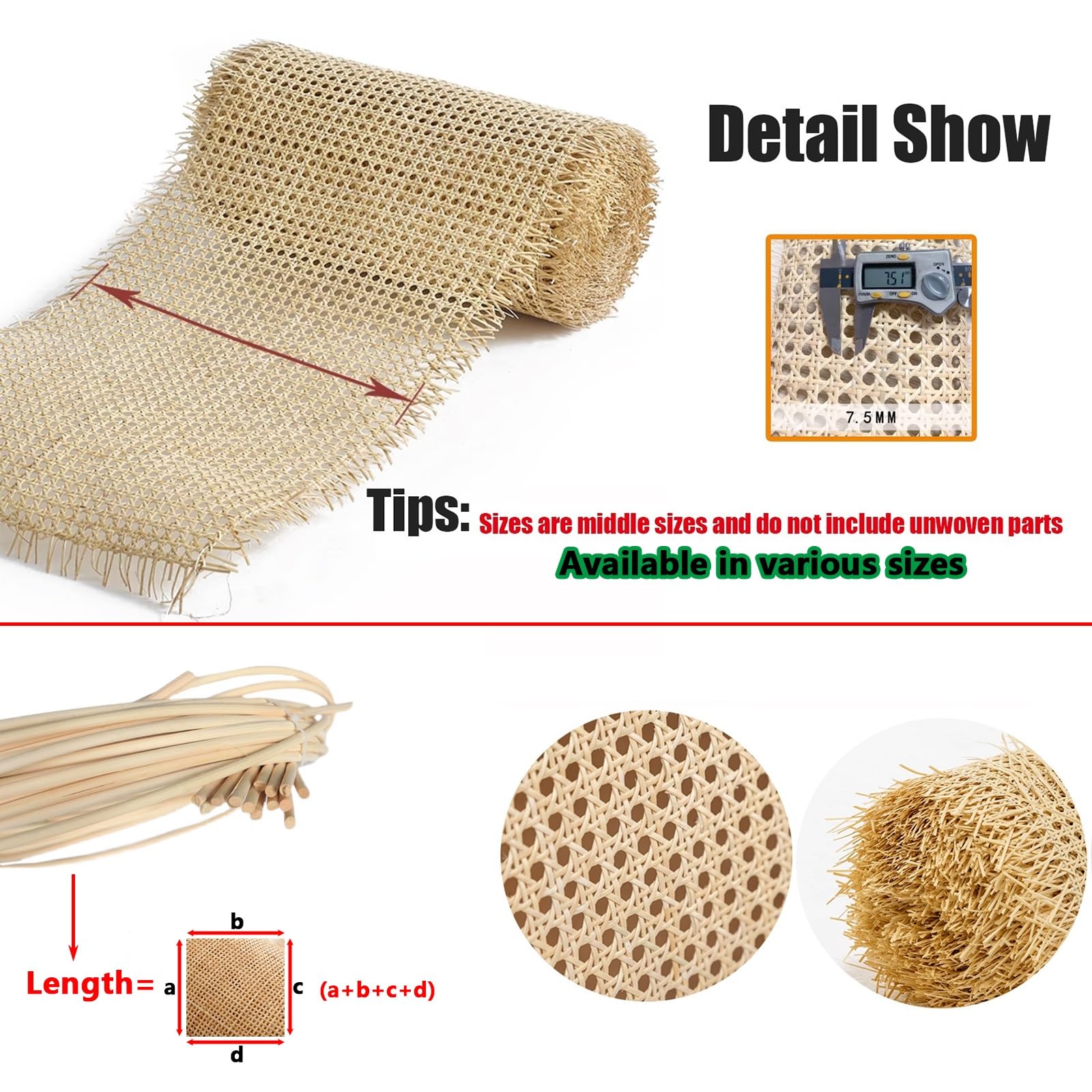 Rouleau de toile en rotin pour projets de cannage - 150 x 45 cm - Maille ouverte tissée pour armoire, chaise, meubles - Fournitures de bricolage Toile Cannage Pré-tissée GZGXKJ 1 Rouleau Rouleau De Cannage Plastique Cannage Rouleau Pour Meuble 42 X 100 Cm En Cannage Rotin Ouverte Tissée Pour Meubles Chaises Plafonds Tissu Cannage Rotin Vous pouvez facilement couper les rouleau de cannage de la taille des meubles. Large gamme d'utilisations : vous pouvez fabriquer des chaises de salle à manger en rotin, des chaises en rotin, etc. Ce cannage de rouleau pour meuble est fait de plastique, il offre une expérience d'utilisation agréable, ce qui peut apporter un service de longue durée. Rouleau Cannage 15mx60cm - Chez Dar Rotin - Rabat Salé Maroc Vous pouvez utiliser le rouleau cannage pour réparer vos vieilles chaises en rotin et autres vieux meubles en rotin. Cannage pour cache radiateur, paravent ou porte placard La largeur de cannage de rouleau ne comprend que la partie centrale. Forfait comprenant:1 x Rouleau de Cannage