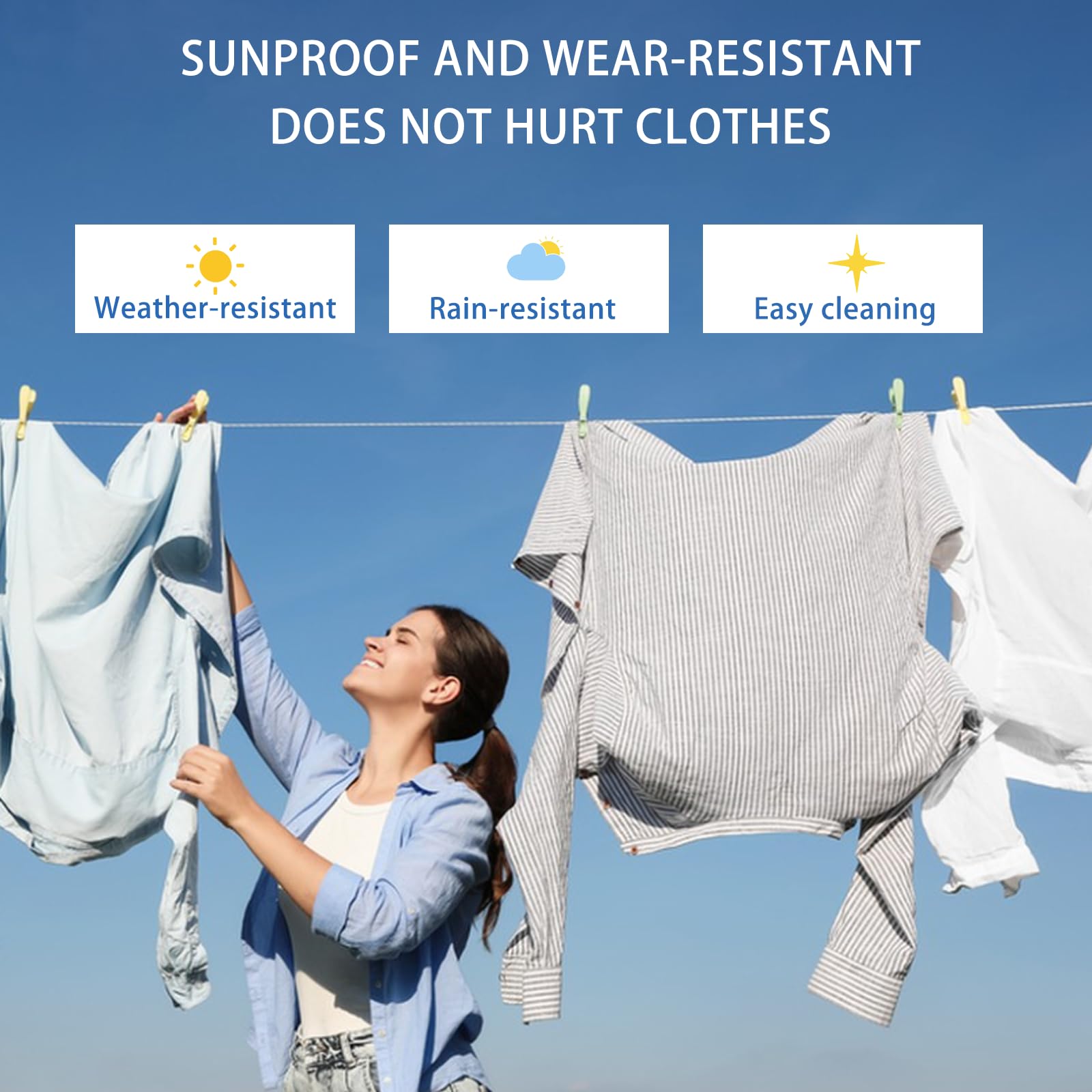 Conception grasse : 2 mm de diamètre, plus épaisse que les cordes à linge ordinaires, peut supporter plus de poids et convient pour sécher de gros articles tels que des vêtements lourds ou des courtepointes Idéale pour les balcons, les jardins ou les buanderies, cette corde à linge offre suffisamment d'espace pour plusieurs lavages. 20 pince à linge extra solide - Mr.Bricolage Grand Sac à Linge pour Voyage et Sport Taille Extra Large Protection contre le vent et antidérapant : la conception spéciale permet à la corde à linge de réparer fermement les vêtements par temps fort venteux, et il ne glisse pas facilement pour assurer l'effet de séchage Étendoir à Linge Extérieur Trigano Windy Vert Utilisation multifonctionnelle : non seulement pour le balcon intérieur, la cour extérieure et d'autres endroits, mais aussi pour le camping et les voyages, pour répondre à différents besoins La coque flexible permet de nouer facilement des nœuds Strata Kit De Corde à Linge Super Robuste – Corde à Linge D'extérieur De 45,7 M Avec Poulie Coulissante Lisse Et Cable En Acier Resistant A La Rouille Fil De Sechage Durable Pour Lexterieur Argente Matériau du fil d'acier déformé en cuivre : il utilise un câble métallique en acier cuivré, qui présente d'excellentes propriétés anti-rouille et peut maintenir une bonne durabilité même dans des environnements humides ou élevés de sel Cette corde à linge de qualité supérieure d'une longueur de 20 mètres est la solution idéale pour votre suspension de linge en intérieur et en extérieur. La section transversale de la corde est parfaitement dimensionnée pour maintenir en toute sécurité les articles de linge légers et lourds.