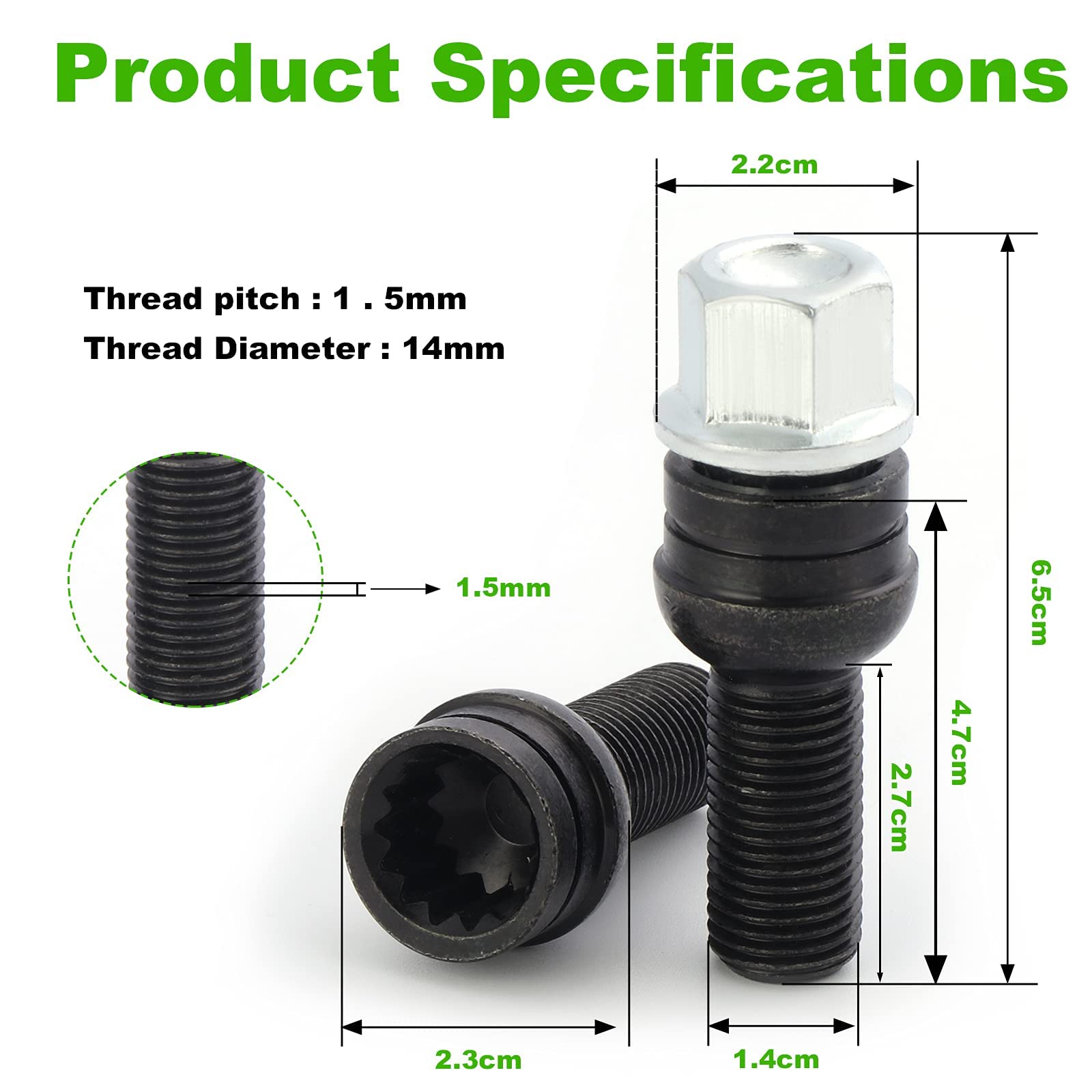 Ecrou Antivol Bmw CLKE Boulon De Oue M14x1.5,Boulon De Oue En Acie Noi Avec Goujon De Roue Kit Antivol Voiture Acier Zingué Noir 4pcs M14*1.5mm Ecrou Antivol Wheel Bolt Lock Set,Car Tyre Douille Ecrou Antivol Universelle Dimensions et spécifications:Matériau : acier ; couleur : noire ; modèle : M14 x 1., 5 mm ; pas de vis : 1., 5 mm (0., 06 pouces) ; diamètre de vis : 14 mm (0., 55 pouces) ; longueur de tige de vis : 27., 5 mm (1., 1 pouces) ; longueur totale : 47 mm (1., 85 pouces) Haute qualité et résistance supérieure:Ces écrous antivol sont fabriqués en acier haute résistance, traités thermiquement et recouverts de zinc noir pour offrir une protection optimale contre la rouille et les dommages. Installation facile et rapide:Ecrou antivol peugeots directement sur les roues, ces goujon de roue sont fournis avec une clé pour un verrouillage sécurisé. Application boulon antivol m14x1.5 applicable pour Audi, pour Bora, pour Golf, pour Jetta, pour Magotan, pour Beatles, pour Passat. Si vous n'êtes pas clair, veuillez d'abord vérifier pour éviter les erreurs d'achat Vous pouvez facilement remplacer vos usés ou endommagés avec ce kit sans effort supplémentaire Ces écrous antivol M14X1.5 ouverts à portées coniques (60°) sont fabriqués dans un acier de haute qualité, forgés à froid, puis soigneusement zingués afin de leur conférer une résistance, une finition et une durabilité exemplaire Boulon antivol roue offrent une stabilité et une fiabilité exceptionnelles pour une sécurité renforcée Garantie de durabilité et de résistance à l'usure, idéale pour une utilisation quotidienne