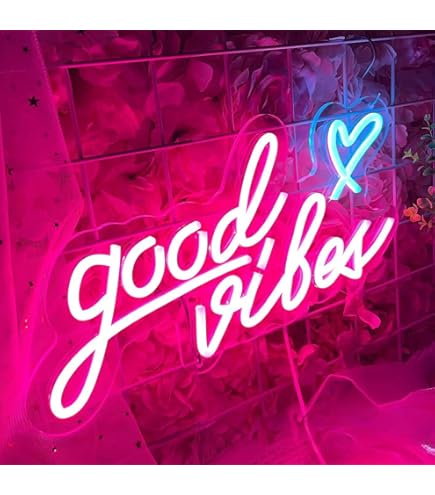 Facile à installer et à utiliser: Un panneau de néon personnalisé, le paquet inclut également 2 crochets et une chaîne. Enseigne Au Néon Good Vibes (13'' X 7''), Alimentée Par Usb, Avec Variateur, Lumière Néon Led Pour Décoration Murale De Chambre À Coucher, Salle De Bain, Salle De Jeu, Bar, Mariage (bleu Vous pouvez le suspendre directement au mur ou le placer sur une table ou une commode. Design pour éclairer votre humeur: Éclairez le mur de votre chambre avec le néon bleu Good Vibes et restez positifs ! Un cadeau unique pour les anniversaires, les déménagements, la Saint-Valentin, les anniversaires de Noël, ainsi que pour d'autres occasions festives en tant que fond d'écran ou accessoire de photos pour la famille, les amoureux, les amis et les collègues Good Vibes Néon USB Enseigne Au Néon Led En Forme De Cœur Rose, Décoration Murale Esthétique Pour Salon De Bar, Petite Entreprise, Cadeau De Chambre à Coucher, Lumière Au Néon USB Led Personnalisé C'est un cadeau idéal pour la famille, les enfants et les amis Il illuminera votre environnement avec sa lumière ultra-attractive, devenant le point focal de votre chambre et de vos réunions. Usage polyvalent: Idéal pour décorer le balcon, la baie vitrée du balcon, la chambre d'enfants, la salle à manger, le porche, le pavillon, les étagères, etc. Lettres LED personnalisées: Ces panneaux néon pour chambre sont fabriqués avec des tubes néon souples et in cassables, ainsi qu'un panneau d'acrylique offrant une excellente transmission de lumière, avec un éclairage doux et uniforme. Enseigne Néon LED Good Vibes - Maroc Utilisant la dernière technologie des tubes LED flexibles, ces panneaux néon pour décoration de bar à domicile ont été créés avec un variateur de luminosité et un interrupteur, offrant un véritable chef-d'œuvre Néon mural USB Be Happy rose Ostaria