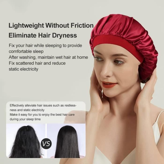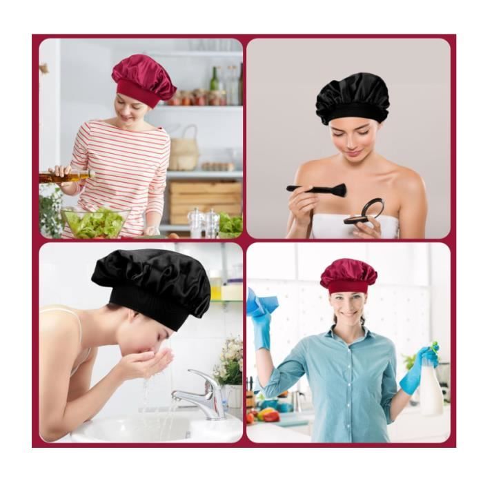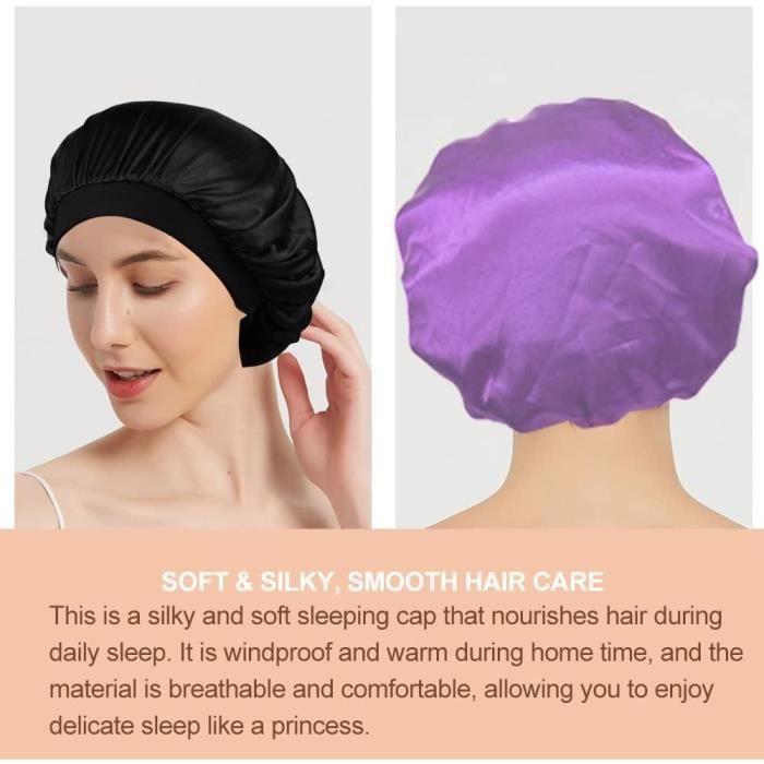 Accessoire Beauté Sommeil Bonnets De Nuit Satin 2pcs - Soin Bonnet Satin Doublé Accessoire Beauté Sommeil Bonnets De Nuit Satin 2pcs - Soin Cheveux Élastique Réutilisable Bonnet Satin élastique Bonnet En Satin Femme Bonnets de couchage en satin - Double couche - Élastique - Réglable - Au quotidien Bonnet de Nuit Satin - 3PCS - Élastique Réutilisable - Chapeau Sommeil - Soin des Cheveux Femme...
