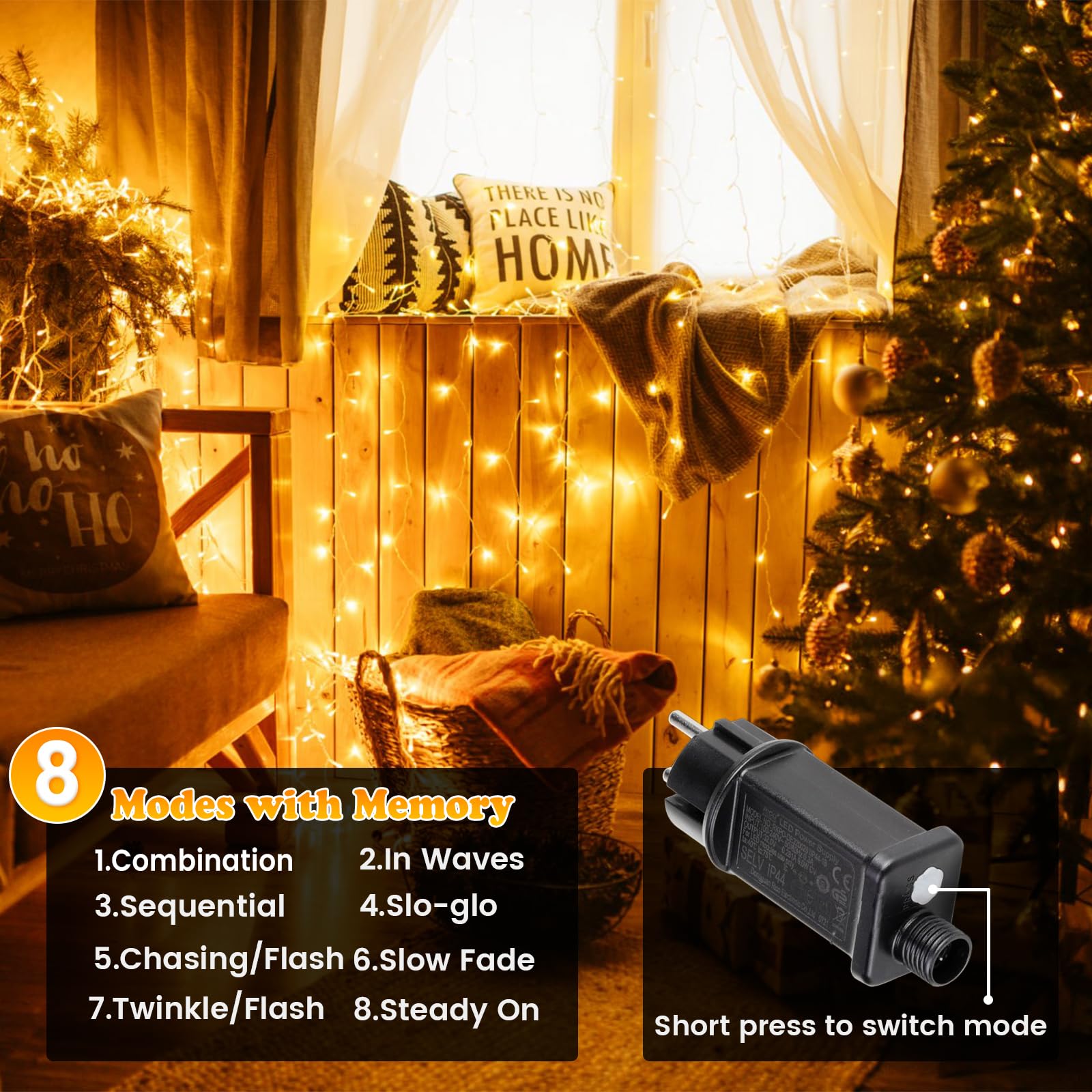 Illuminez votre jardin ou votre terrasse avec une guirlande lumineuse extérieure de 10 mètres. Que ce soit pour créer une ambiance chaleureuse lors de vos soirées en plein air ou pour décorer votre espace extérieur lors des fêtes, la guirlande lumineuse est un accessoire incontournable La fonction de minuterie est activée lorsque la clé verte s'allume. 【Sécurité et économie d'énergie】31V tension de sortie Prise standard européenne, tension d'entrée : 100V-240V ~ 50/60Hz, tension de sortie : 31V. Vous pouvez les suspendre comme une chaîne légère à l'extérieur et être utilisé comme décoration pour les zones intérieures et extérieures telles que les chambres, les fenêtres, les balcons, les jardins, les pavillons, etc. 【Supports de plusieurs lumières de fée】Il y a un connecteur à l'extrémité des lumières de fée qui peut accueillir plusieurs lumières de fée. La guirlande lumineuse peut rester dans le mode souhaité jusqu'à ce que vous en changiez. 【Fonction de mémoire】Le mode de lumière a une fonction de mémoire, lorsque la chaîne est éteinte et redémarrée, le mode de lumière est le même qu'avant la panne de courant. Appuyez sur le bouton de la fiche et maintenez-le enfoncé pendant 3 secondes. Lumières de glaçons de 5m/10m, un bon choix pour la décoration intérieure et extérieure ! 【IP44 Imperméable】Les guirlandes lumineuses sont parfaites pour une utilisation à l'intérieur et à l'extérieur, comme les fenêtres, les balcons, les jardins, les toits-terrasses, les rampes, les gazebos, etc. Les guirlandes lumineuses de Noël étanches et joliment décorées pour l'intérieur et l'extérieur, de différentes tailles et quantités de LED, peuvent répondre à vos différents besoins en matière de décoration. Rideau Lumineux Noel Extérieur 10M 400Leds Guirlande Lumineuse Utilisation Multi-occasionnelle Les lumières de barres de glace peuvent être utilisées pour les décorations intérieures et extérieures, telles que les décorations de maison, de balcon, de chambre, etc. Fonction Mémoire Le dernier mode réglé est sauvegardé à chaque fois que les guirlandes lumineuses sont allumées. Pas de batterie nécessaire, économie d'énergie et de coût, pas de risque de choc électrique. IP44 Imperméable La chaîne légère IP44 imperméable peut résister au vent et à la pluie normaux. 8 Effets d'éclairage Programmés (Combinaison, en arbre, séquentiel, slo-glo, chasse / clignotement, décoloration lente, éclat / clignotant, lumière constante) pour mieux décorer votre maison. pour créer des effets d'éclairage idéaux et une atmosphère festive. Guirlande Lumineuse Extérieure, 10M 400 LED Rideau Lumineux Noel Avec Etanche Minuterie 8 Modes Memoire Connectable Guirlande Lumineuse Rideau Pour Balcon Noel Decor Exterieur Blanc Chaud Lot De 2 91988105 Éteignez automatiquement après 6 heures et après 18 heures. Portée de la livraison: 1 x chaîne légère à glace à LED , 1 x brochure