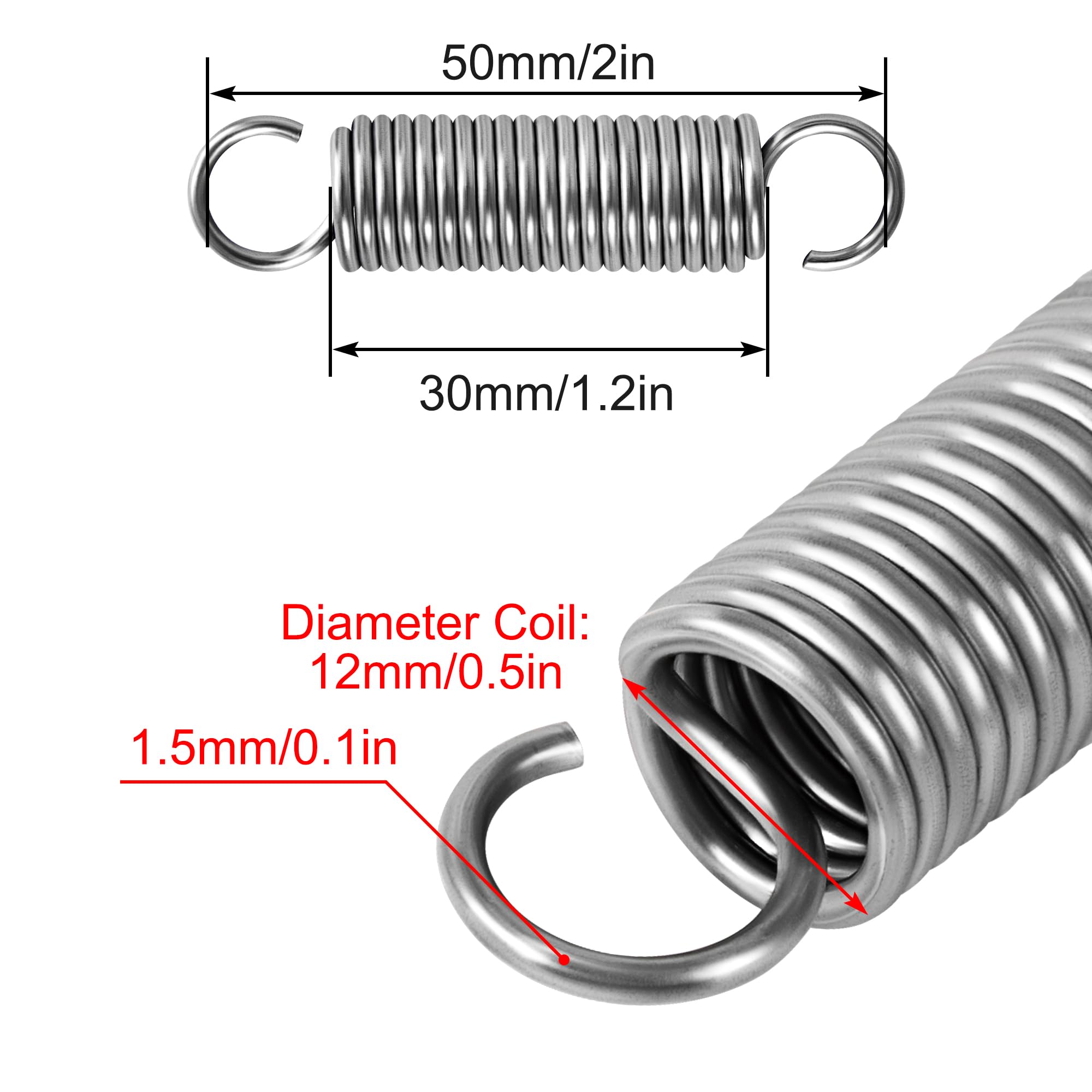 Il présente une résistance élevée, une bonne élasticité et une longue durée de vie Spécifications: Matériau: acier inoxydable 304 Couleur: couleur acier inoxydable Traitement de surface: poli Diamètre du fil: 0,8 mm Diamètre extérieur: 12 mm Longueur statique: 80 mm Force maximale du ressort: environ 1,2 KG (11,77 N) Longueur de compression maximale: 60 mm Taille: 0,8x12x80 mm Le forfait comprend: 10 pièces x ressort de compression Ressort de compression. Diamètre du fil : 0,8 mm. Diamètre extérieur : 8 mm. Longueur : 80 mm. Par 6. En stock - Click & Collect Gratuit Les ressorts de compression sont constitués d'un fil d'acier à ressort rond de forme cylindrique avec un pas constant et une caractéristique de ressort linéaire de qualité 2 (plage de tolérance moyenne) selon DIN EN 15800 Longueur de compression maximale: 60 mm SOURCING MAP Ressort de compression en acier inox 304 10mm OD 0,7mm Haute élasticité: ressort de compression de haute précision, espacement uniforme, forte résilience et force stable, offre une résistance et une élasticité élevées Largement applications: largement utilisé dans les appareils électroménagers, les interrupteurs électriques, les équipements mécaniques, les outils électriques, les jouets, les tondeuses à gazon et d'autres domaines Ressorts Bricolage Mécanique Jouets 10pcs Ressort De Compression 304 Feeder En Acier Inoxydable Ressort Ressorts Compression Acier Inox 304 Spécifications: 10 Pièces ressort de compression, diamètre du fil: 0,8 mm, diamètre extérieur: 12 mm, longueur statique: 80 mm -Fabriqué en acier inoxydable 304 de qualité supérieure, difficile à rouiller et à corroder, haute résistance et élasticité. -Idéal pour les projets de production, d'assemblage, d'expérimentation, de recherche, de développement et de maintenance.