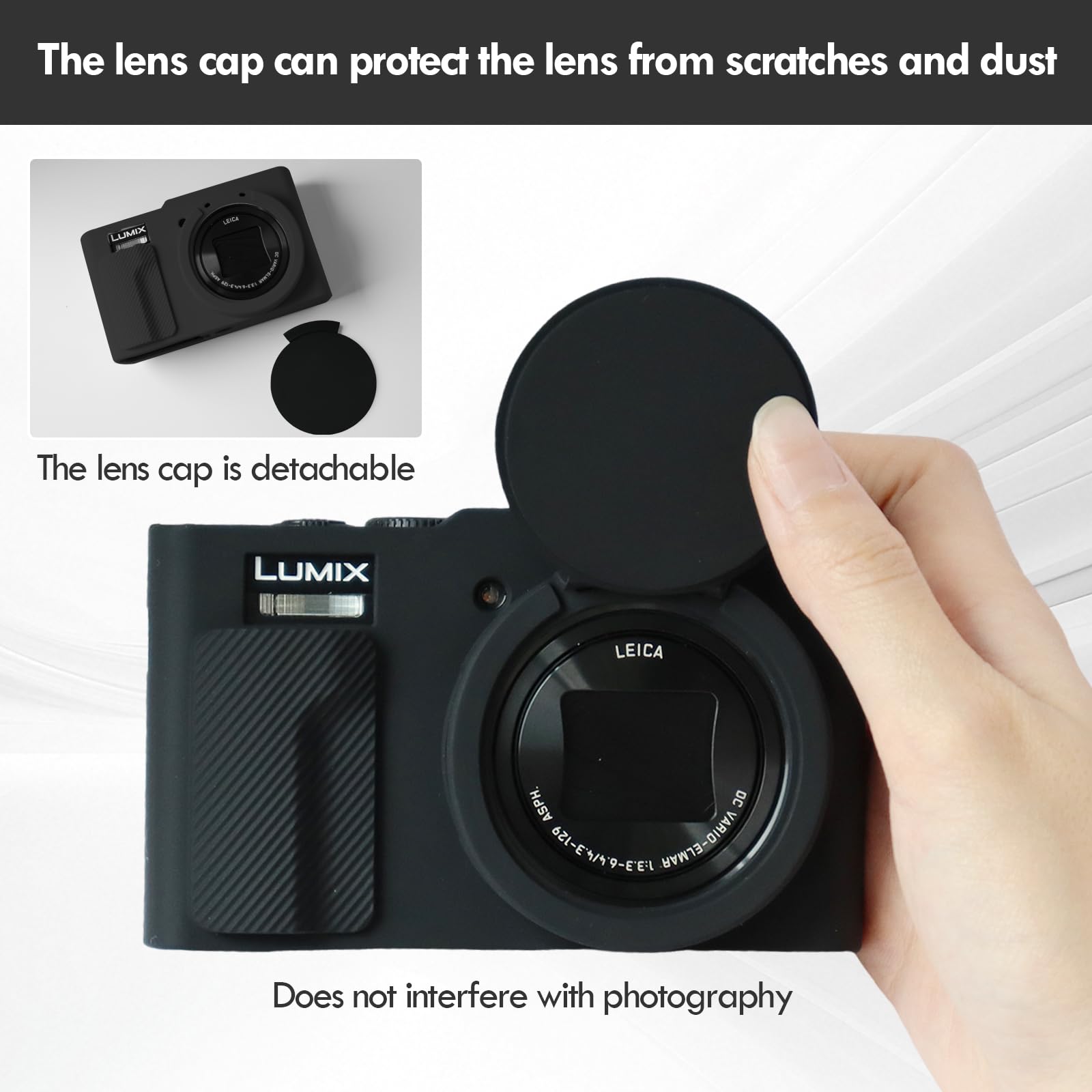Caractéristiques : Fabriqué en caoutchouc souple, léger et s'adapte parfaitement à l'appareil photo. Ajustement parfait : étui en silicone spécialement conçu pour les modèles d'appareils photo Panasonic Lumix TZ99/ZS99, assurant un alignement précis avec tous les boutons et ports Remarque : s'il y a un problème sur le produit, veuillez nous en informer à temps, nous ferons de notre mieux pour vous aider à résoudre Matériau doux : l'étui pour Lumix Tz99/Zs99 est fabriqué en silicone souple et durable, doux et confortable, léger, n'ajoute pas de charge à votre appareil photo. Livré avec un joli cache d'objectif amovible qui est facile à enlever / à fixer à l'objectif de votre appareil photo lorsque vous ne l'utilisez pas. Accessoire Photo Léger 40g TZ99 Étui De Protection En Silicone Souple Ultra Fin Et Léger Accessoire Photo Léger Lavable Matériau doux et silicone : fabriqué en silicone souple mais robuste, cette coque offre une sensation agréable et légère et n'ajoute pas de volume supplémentaire à votre appareil photo. Et le matériau en silicone est lavable, facile à nettoyer. Protection efficace : cet étui en silicone est parfait pour Lumix Tz99/Zs999, protège votre appareil photo contre les chocs, la poussière, les glissades, les rayures, les éraflures, l'usure quotidienne pour fournir une protection efficace. Le matériau est lavable, facile à nettoyer et à entretenir, ce qui garantit une utilisation durable. VOVMOEYA DC-TZ99 Étui en silicone souple et léger avec 2 films de protection d'écran et dragonne pour Panasonic Lumix TZ99 Compatibilité : cette coque en silicone est compatible avec les appareils photo Lumix Tz99/Zs99, s'adapte parfaitement à l'appareil photo, offre un accès à tous les boutons de l'appareil photo. Protégez votre appareil photo Lumix avec un étui de qualité qui préservera votre équipement des chocs, de la poussière et des intempéries. Choisissez parmi les différents modèles d’étuis pour appareil photo disponibles sur , en fonction de la taille de votre appareil, de vos besoins en rangement pour les accessoires et de votre style