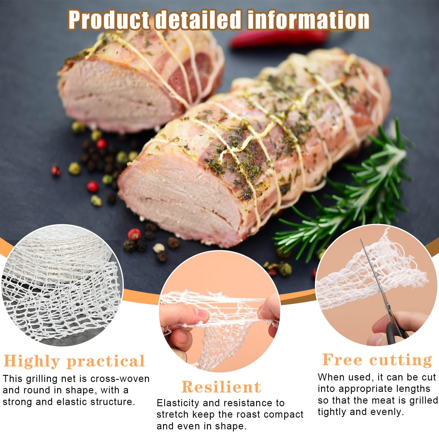 Filet à Viande Pour Fumer La Viande, Largeur 125 Mm, 32 Mailles, 50 M Hendi 559260 82892157 Filet Marinade Retirer Facilement Filet à Viande,Filet à Rôtir,Filet à Fumer, Filet à Jambon,Filet De Filet Alimentaire élastique Blanc Facilement Amovible : Après utilisation, notre maille en coton peut être facilement retirée avec des ciseaux de cuisine. Spécifications du Produit Matériel : Coton Longueur : 3 mètres Largeur : 4,5 cm Couleur: Blanche Matériau de Qualité Alimentaire : Notre filet à viande est fait de fil de coton de qualité alimentaire de haute qualité, qui peut être en contact direct avec les aliments et est sûr et non toxique. LATRAT Lot de 4 rouleaux de filet à rôtir en coton élastique - Filet à viande - Filet à jambon - Filet élastique pour tube de remplissage - Accessoire de cuisine - 100/300 cm - Blanc Élastique et Résistant à La Déchirure : Notre filet à viande est élastique, résistant à la déchirure, stable et a une bonne capacité de charge. Filet pour roti Le filet pour rôti est un accessoire incontournable en cuisine pour réussir à la perfection vos rôtis et vos volailles. Fabriqué en matière résistante et alimentaire, il permet de maintenir la forme de votre viande pendant la cuisson, tout en assurant une répartition homogène de la chaleur Enveloppez hermétiquement la viande ou le jambon avant la cuisson et fixez-le avec un filet pour garantir une cuisson uniforme sans se désagréger. Il est également parfait pour conserver, suspendre de la viande ou ajouter une touche décorative à vos créations.