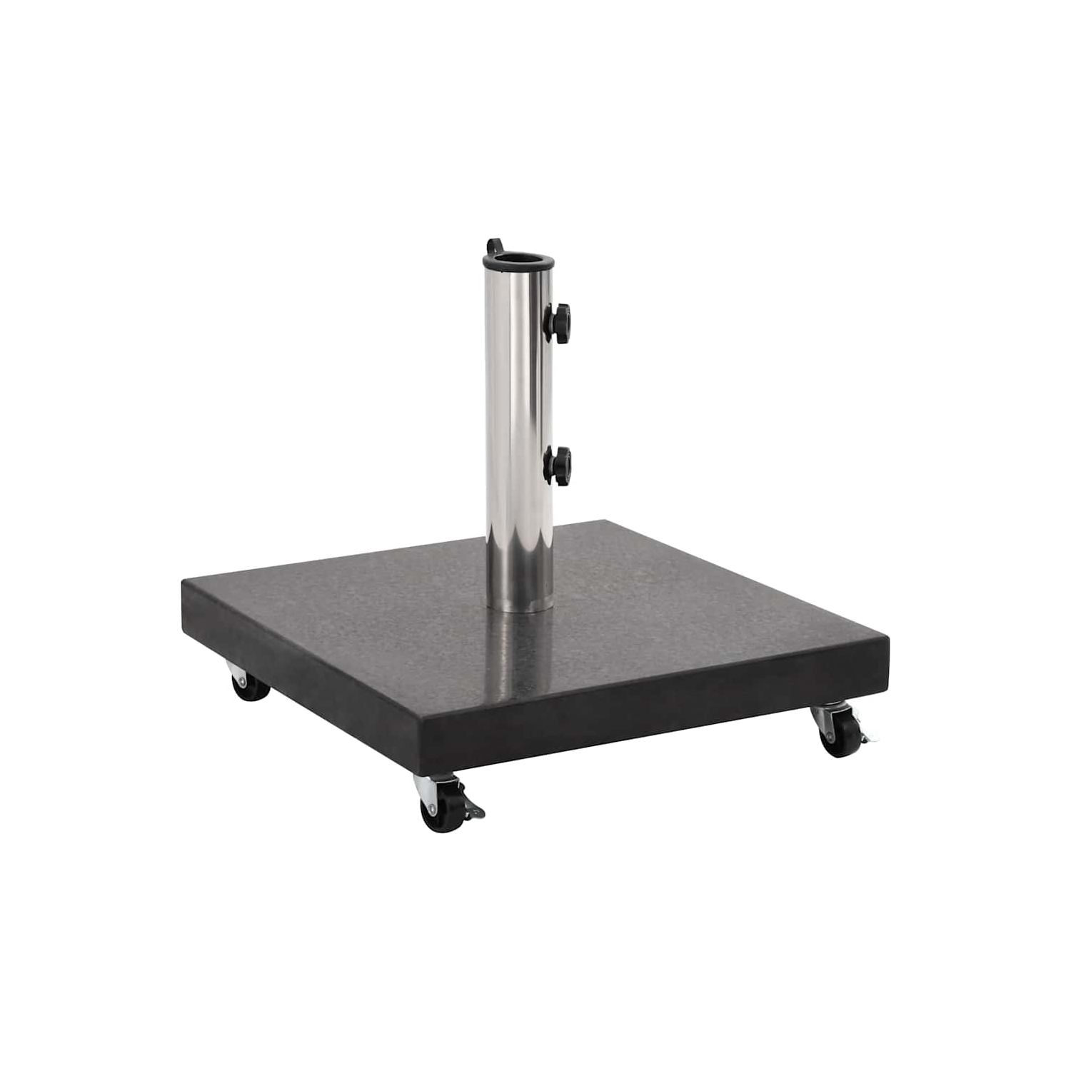 Cette base de parasol sur roues offre une base solide pour tes parasols extérieurs, les gardant en sécurité même quand il y a du vent. Socle de parasol Granite 30 kg Rond Noir Portabilité : Des roues pour un déplacement facile, te permettant de bouger ton parasol sans soucis. 【Portabilité :】 Des roues pour un déplacement facile, te permettant de bouger ton parasol sans soucis. 【Attrait visuel :】 La finition en granit texturé est chic et va super bien avec les décors extérieurs modernes tout en étant pratique. Pied De Parasol Granit VidaXL Bas D Parasol Sur Rous Pour Potaux D Diam.38/48mm Gris Granit 25 Kg Rctangulair Au Millur Prix Déplacement Facile Roues Intérieur/extérieur : Extérieur uniquement, Pièce : Balcon 【Support ajustable :】 S'adapte aux poteaux de parasol de Ø38 ou Ø48mm, parfait pour plein de styles de parasol. 【Matériau durable :】 En granit robuste, cette base résiste aux intempéries et garde ton parasol bien en place, te laissant tranquille. Contenu de la livraison : Base de parasol, Assemblage requis : Oui VidaXL Juego bases de sombrilla 4 uds para parasol cruzado PP 100 kg Nombre de personnes recommandé pour l'assemblage : 1, SKU : 42006585, EAN : 8721158935540 Facile à installer : cette base de parasol est dotée d’un bouton de serrage pour fixer plus fermement votre parasol à la base. Compatible avec plusieurs tailles de mâts : cette base de parasol est livrée avec 2 adaptateurs de mâts, ce qui lui permet de s’adapter à des mâts de parasol d’un diamètre de 38 et 48 mm