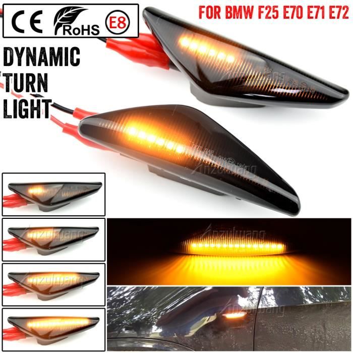 Spécifique BMW X5 E70, X6 E71, X3 F25 63137171008 - Packs de 2 Clignotants à LED Dynamiques . Le pack comprend deux modules de clignotant défilant pour X3 X5 X6 Spécification:Type d'article : ClignotantPosition sur les véhicules : Avant, Droite/GaucheTension : 12 VLe paquet comprend :1 clignotant de voiture/1 paire de clignotants de voitureNos clignotants automobiles sont conçus spécifiquement pour votre voiture, vous offrant une meilleure visibilité et une conduite plus sûre. Feu Clignotant BMW X6 E71 Clignotant Latéral ANG RONG 63137171007 Répétiteur Clignotant Latéral LED Noir Pour BMW X3 F25, X5 E70, X6 E71/E72 | 12V, Lentille Fumée Feu Position BMW 12V Clignotant LED BMW X6 E71 Lorsque le voyant d'avertissement est allumé, l'effet lumineux dynamique peut donner un aspect intéressant à votre voiture, et il est plus facile de rappeler aux véhicules et aux piétons de faire attention, et l'effet d'avertissement est bon. 63137171007 63137171008 Clignotant latéral pour BMW X5 E70 (2007-2014), X3 F25 (2011-2015) et X6 E71 (2008-2014). Nos clignotants automobiles sont spécialement conçus pour votre véhicule, offrant une visibilité accrue et une conduite plus sûre. Les clignotants automobiles projettent la sécurité sur la route, améliorent la visibilité et révolutionnent votre expérience de conduite. Avec nos clignotants automobiles, vous pouvez conduire en toute confiance et obtenir la meilleure sécurité et tranquillité d'esprit Feu de signalisation latéral pour BMW X5 E70 X6 E71 E72 X3 F25, clignotant dynamique de voiture, 2 pièces Ce produit s'allume instantanément, est économe en énergie et durable. Ce clignotant latéral pour rétroviseur donne à votre véhicule une allure moderne et dynamique grâce à ses LED, tout en améliorant la sécurité de nuit. Réduisez votre consommation d'énergie et faites des économies.