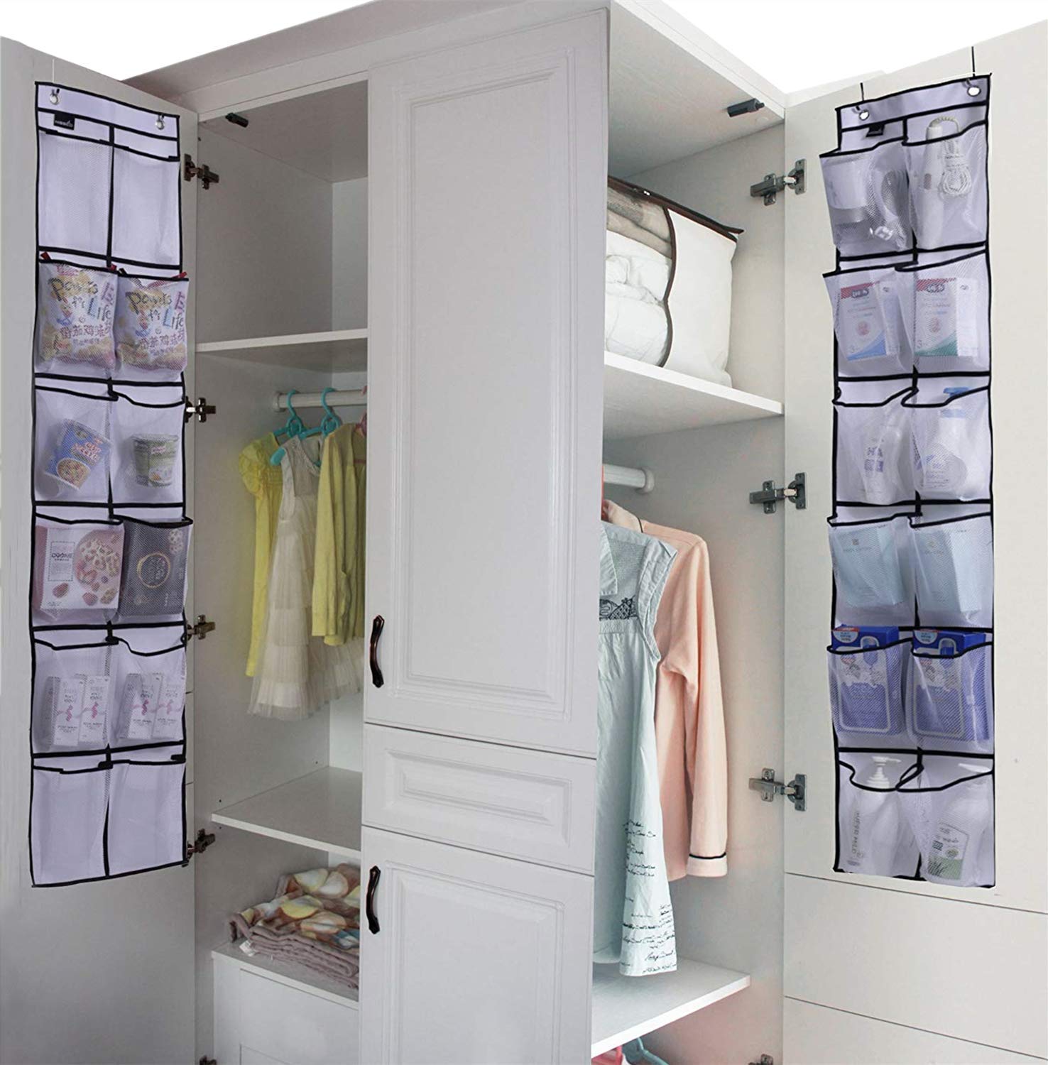 Rangement Pour Vêtements Et Penderies Rangement De Chaussures à Suspendre Sur La Porte,24 Poches Organiseur à Chaussures Avec 3 Crochets,Stockage De Chaussures Pour Salle De Bain Cuisine Blanc Rangement Chaussures Gain De Cette fonctionnalité est particulièrement utile lorsque vous êtes pressé et que vous avez besoin de saisir vos chaussures ou accessoires lors de vos déplacements. S'adapte à la plupart des portes et gain de place : nous fournissons 4 crochets métalliques robustes pour que vous puissiez l'accrocher facilement sur la porte derrière la porte d'une épaisseur de 3,5 à 5 cm. Vous pouvez également accrocher cette étagère à chaussures suspendue n'importe où ailleurs car elle ne nécessite aucun... RETON Le lot de 2 organiseurs à chaussures à suspendre sur la porte est une solution élégante et pratique pour vos besoins de stockage. Caractéristiques : Couleur 【Organisateurs au-dessus de la porte】: le colis comprend 1 petite étagère à chaussures suspendue (150,1 x 30 cm), 1 grande étagère à chaussures à porte (150,1 x 55 cm) et 6 crochets, offrant de nombreuses options de rangement pour divers articles. Les supports suspendus disposent d'une combinaison de petites et grandes poches en filet, idéales pour ranger une variété de chaussures, des tailles enfants à adultes, ainsi que d'autres accessoires, et les crochets peuvent être utilisés pour des articles légers, offrant une solution de rangement multifonction pour votre maison. Rangement chaussures à suspendre Périgot 【Design de poches transparentes】: le design transparent des poches permet une identification facile du contenu, ce qui le rend pratique pour trouver rapidement les articles dont vous avez besoin. RETON Le lot de 2 organiseurs à chaussures à suspendre sur la porte est une solution élégante et pratique pour vos besoins de stockage. Taille : petit organiseur : 150 cm x 30 cm. Conseil : Veuillez noter que les mesures sont prises à la main et peuvent varier légèrement. Dimensions du grand organiseur : 150 cm x 55 cm. 【Tissu non tissé durable】 : fabriqué en tissu non tissé de haute qualité, ce rangement à chaussures suspendu est non seulement respectueux de l'environnement, mais également connu pour sa durabilité et sa résistance à l'usure. Cet organisateur de rangement suspendu est conçu pour utiliser efficacement l'espace et rendre votre espace plus spacieux et bien rangé. Caractéristiques : Couleur : blanc.