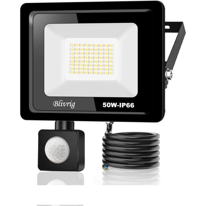 50W Projecteur LED Exterieur Detecteur de Mouvement 2 Pièce, IP67 Eclairage Exterieur Avec Detecteur Projecteur LED Avec Détecteur De Mouvement IP66 Spot Extérieur Spot Led Extérieur Idéal pour garage, entrée, couloir, cour et jardin toute l'année. Lumière intense & Économie d'énergie: Équipé de 56 LEDs SMD produisant 4700 lumens de lumière froide 6500K sans décoloration, couvrant une zone de 120°. Angle de détection réglable (180°) et portée de 12 mètres pour une sécurité optimisée. Facile à installer : ce projecteur LED avec détecteur de mouvement est réglable à 180° et l'angle réglable du détecteur est de 360° horizontalement et verticalement de 180 Dissipation thermique avancée et résistance à la corrosion pour une durée de vie prolongée. EN STOCK : Projecteur led 50w détecteur pas cher. Grand choix, promos permanentes et livraison rapide partout en France. Paiement sécurisé Protection IP66 totale: Boîtier étanche résistant aux intempéries, protégeant contre la poussière et les fortes pluies. Une puissance de 50W équivalant à un projecteur halogène 400W, avec plus de 85% d'économie d'énergie.