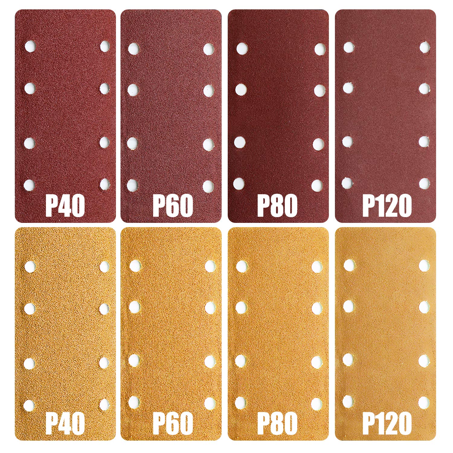 Allecto plus - Papier de verre, grain P80, 225 pièces pour plaques de Papier De Verre à Crochet Et Boucle Grains Assortis 50 Pièces 8 Trous Papier De Verre Carré Assorti Papier De Sable Abrasif Lot Grains Assortis P60 à P240 Cela garantit que les disques restent en place pendant l'utilisation et les empêche de tomber, offrant ainsi commodité et efficacité pour vos projets de ponçage. Item Specifications Matériau:Papier de verre à base d’oxyde d’aluminium Couleur:Jaune Taille:133x80mm Package 10 pièces disques abrasifs à grain 60 10 pièces disques abrasifs grain 80 10 pièces disques abrasifs grain 120 10 pièces disques abrasifs à grain 180, 10 pièces disques abrasifs à grain 240 Applications polyvalentes : Convient à une utilisation avec une large gamme d'outils de ponçage et de meulage, notamment les ponceuses orbitales, les mini-ponceuses à double action, les ponceuses manuelles générales, les ponceuses de retouche, les mini-polisseuses pneumatiques et les outils manuels et électriques. Lot complet avec plusieurs tailles de grain : ce paquet comprend 50 feuilles de papier abrasif jaune avec cinq grains différents Idéal pour le travail du bois, le ponçage des cloisons sèches, le meulage des métaux, la finition des meubles et diverses tâches de polissage de précision. Ce lot complet de 50 feuilles de papier abrasif jaune offre une variété de grains pour répondre à tous vos besoins de ponçage. Avec des dimensions optimisées et un design de qualité, ces disques abrasifs sont parfaits pour une utilisation polyvalente avec divers outils de ponçage et meulage Matériau en oxyde d'aluminium : Fabriquées à partir d'abrasif en oxyde d'aluminium, ces feuilles abrasives offrent une durabilité exceptionnelle et des performances de ponçage efficaces. Pack complet avec plusieurs tailles de grains : Ce pack comprend 50 feuilles de papier de verre jaune avec cinq grains différents : P60, P80, P120, P180 et P240, chacun avec 10 feuilles.