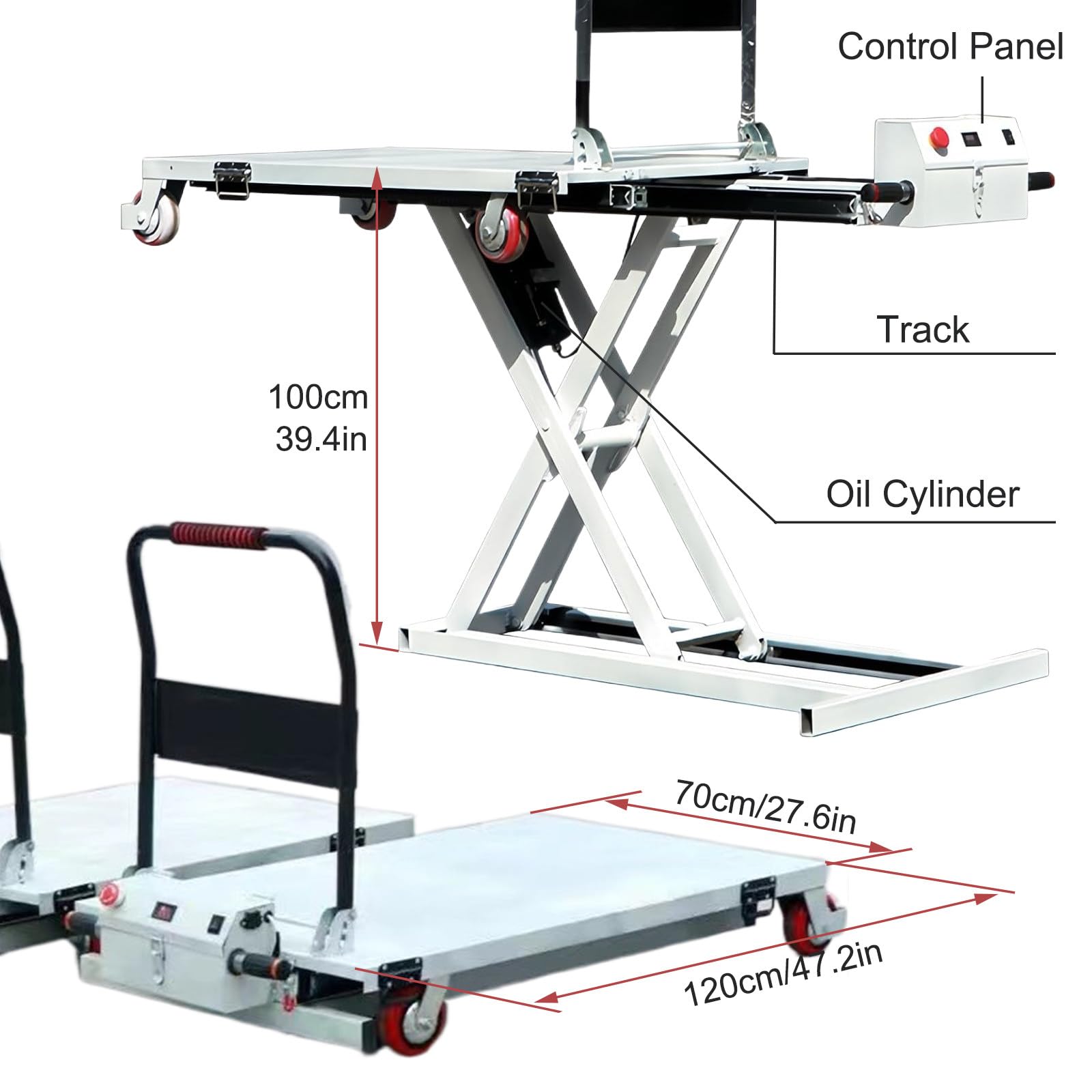 Son matériau épais offre une répartition stable de la force, lui permettant de supporter une forte pression, tandis que sa surface résistante à l'usure supporte l'humidité et l'utilisation quotidienne sans rayures. Tailles disponibles : - 400 x 320 mm : hauteur initiale 100-310 mm, vitesse à vide 10 mm/s, charge maximale 50 kg, poids 7 kg. - 1 télécommande sans fil., - 1 adaptateur secteur., Remarques : 1., Veuillez vérifier la taille avant de commander., 2., Assurez-vous que la table élévatrice est placée sur une surface plane et ferme pour une stabilité optimale. Télécommande sans fil facile : équipée d'une télécommande sans fil conviviale, le réglage de la hauteur de la table basse est sans effort. - Conçu pour un réglage facile de la hauteur à la maison et adapté aux usines, entrepôts, supermarchés, chambres froides et autres environnements nécessitant une manipulation fiable des matériaux. Table élévatrice hydraulique 1190x1190x200mm | Tables élévatrices Rangez facilement les articles sous la plate-forme de levage pour garder votre bureau organisé et sans encombrement, facilitant ainsi une utilisation sans effort. Capacité de charge exceptionnelle : conçue avec des bras de levage robustes et un mécanisme de ciseaux anti-pincement, ainsi qu'une pompe hydraulique de qualité supérieure, cette table offre une capacité de charge impressionnante, ce qui la rend parfaite pour transporter des articles plus lourds avec facilité. Table élévatrice mobile devis sous 3h Table à Ciseaux Télécommande Sans Fil Fixe Encastrable WH - Capacité 1000 Kg à Table élévatrice électrique Construction en métal durable : le cadre de levage de la table basse électrique est habilement fabriqué à partir de métal de haute qualité, assurant une résistance exceptionnelle à la rouille et à la déformation. - 590 x 420 mm : plage de levage 210-580 mm, vitesse à vide 10 mm/s, charge maximale 100 kg, poids 14 kg. Nous vous présentons notre table élévatrice électrique à ciseaux, la solution parfaite pour la manutention de matériaux dans les entrepôts et les usines - La télécommande sans fil permet de régler sans effort la hauteur de levage au niveau souhaité. Design pliable peu encombrant : cette table élévatrice électrique à ciseaux dispose d'un design pliable qui maximise l'efficacité de l'espace. Nous vous présentons notre table élévatrice électrique à ciseaux, la solution parfaite pour la manutention de matériaux dans les entrepôts et les usines. Démarrez ou mettez en pause le levage à la hauteur souhaitée avec facilité, en utilisant une tige de poussée silencieuse et efficace et un moteur CC réduisant le bruit pour une puissance de sortie stable.