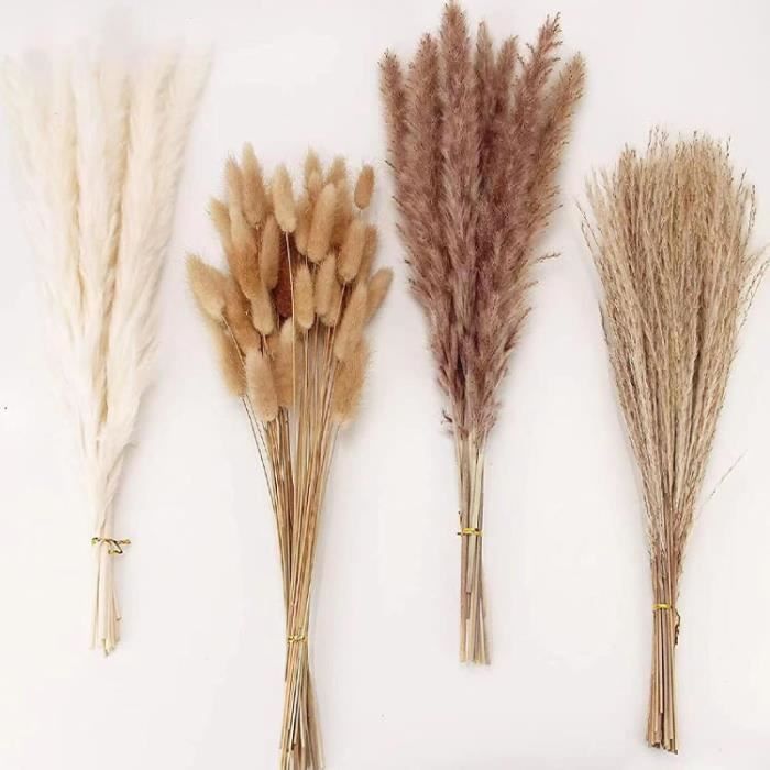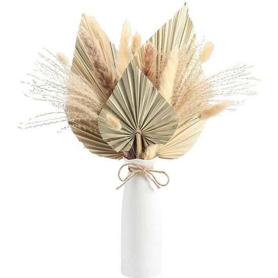 Idéal pour agrémenter une décoration de cheminée, une chaise boho ou une décoration murale d’entrée, il ajoute une touche sophistiquée à votre intérieur Idée Cadeau Poétique Offrez ce bouquet artisanal pour un cadeau de maison, un mariage bohème, un anniversaire, ou simplement pour égayer un intérieur. Adapté aux décors de nursery boho, aux fêtes vintage, ou aux ambiances cottage chic, c'est un présent plein de charme pour toutes les occasions. Évitez simplement l’humidité pour les conserver des années. Vous pouvez les arranger librement pour s’adapter à votre style : en vase, en suspension murale ou même en art floral DIY. Fleurs Séchées Pour Mariage Centre Table Décoration De Fleurs Artificielles En Herbe De Pampa Ensemble De Lot Fleurs Séchées 91 Pièces Sélectionnées pour leur qualité, ces fleurs séchées pour l'artisanat conviennent aussi bien en décor de table, en pièce centrale de mariage qu’en décoration rustique. Secouez-les délicatement avant de les disposer pour une décoration de pampas sèches durable et esthétique Idéal pour : Centres de table de mariage Décoration murale bohème Cheminée, étagère ou entrée Créations DIY & artisanales Un must-have pour les amoureux des ambiances naturelles et romantiques ! Charme rustique:Les fleurs boho aux teintes terreuses apportent chaleur et convivialité, parfaites pour une décoration rustique. Herbe De La Pampa 3 Tiges 29 Pouces Pampa Bouquet Extérieur Moelleux De... Ce bouquet de pampas et herbes séchées apporte une touche bohème et naturelle à votre intérieur, sans l'entretien des fleurs coupées. Ce magnifique bouquet de fleurs séchées s’intègre harmonieusement dans un décor boho, un salon de ferme ou une maison au style occidental. Leur texture naturelle et leurs tons neutres en font un choix intemporel Pour redonner du volume aux pampas, exposez-les quelques heures au soleil : leurs plumets retrouveront leur moelleux. En faisant le choix de fleurs artificielles en pot, vous pourrez profiter de multiples variétés de végétaux et de fleurs multicolores. Grâce aux tissus de qualité, avec lesquels elles sont fabriquées, l'effet esthétique qu'elles produisent est parfaitement naturel Fleurs Séchées - 68pcs - Herbe de Pampa Naturelle - Décoration Roseau Matériaux naturels Premium:Ce bouquet associe avec harmonie herbe de pampas, tiges de coton doux, queues de lapin et quelques fleurs artificielles pour plus de durabilité.