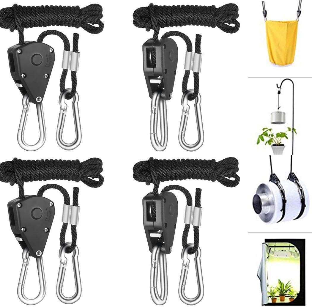 Avec Capacité de charge remarquable de 50 kg, ces cordes peuvent supporter même les charges les plus lourdes avec Facilité, ce qui les rend parfaits pour accrocher de grandes lumières LED dans votre jardin intérieur, stabiliser les tentes pendant les voyages en camping ou sécuriser les parasols par temps venteux. Fabriquée avec précision, chaque corde dispose d'une épaisseur de 0,3 cm qui frappe parfaitement équilibre entre flexibilité et robustesse. Contenu de l'emballage : 8 cordes de levage LED pour plantes Matériaux : nylon, aluminium, métal. Ces cordes polyvalentes ne sont pas seulement destinées aux lampes de plantes et aux tentes. Lot de 4 cintres réglables renforcés de 1/8 po, à cliquet pour tente... QINREN Lot de 4 paires de cordes à cliquet robustes de 1/8 cm Longueur : chaque pièce mesure environ 200 cm de long., Poids : 280 g. Que vous aménagiez un grand camping ou que vous organisiez votre installation de jardinage intérieur, ce lot est ce qu'il vous faut. Le mécanisme à cliquet facile à utiliser permet un serrage et un desserrage rapides, ce qui vous permet d'économiser du temps et des efforts Choisissez nos cordes à cliquet pour tous vos besoins de sécurité! Corde à Cliquet Réglable CHSG Lot De 8 Cintres à Cliquet Robustes De 0,3 Cm, 2 M, Pour Corde Nylon Crochet Réglable Capacité de charge : 34 kg par cliquet. 68 kg/pr. Garantit une flexibilité maximale pour une utilisation et un réglage fluide. Réglage stable et fluide : entièrement réglable et verrouillage rapide, tirez simplement l'extrémité libre de la corde pour l'ajuster à la hauteur souhaitée Que vous soyez un passionné de campeur, un jardinier dévoué ou quelqu'un qui a besoin de confiance Sécurisation des outils dans la maison, nos 8 cordes à cliquet réglables de 0,35 cm avec Les crochets sont le complément parfait à votre trousse à outils. Ces cordes à cliquet robustes sont conçues pour offrir une résistance inégalée et Fiabilité. Ne faites pas de compromis sur la qualité et la sécurité. Nous vous présentons nos 8 cordes à cliquet réglables de 0,3 cm avec crochets, le nec plus ultra Solution pour tous vos besoins de fixation et de suspension. Ce qui distingue nos cordes à cliquet est leur construction de haute qualité. Matériau de qualité supérieure : la poulie extérieure est fabriquée en polypropylène durable, tandis que la partie intérieure dispose d'engrenages métalliques très stables, assurant une performance durable.