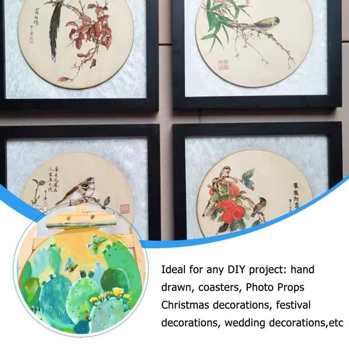Supports Déco Bois Naturel PYXIDAS Lot De 1 - 12 Caisses En Bois Pour Le Stockage, L'organisation Et La Décoration Rond De Bois Décorer avec des techniques de découpage. Cela donne à chaque pièce son propre caractère charmant. Cadeaux personnalisés et décoration de Noël. Prêt à l'emploi : aucun ponçage nécessaire ! Parfait pour les projets de bricolage et les cadeaux : le lot de 5 plaques en bois rondes est idéal pour la décoration de la maison, les cartes de mariage, les décorations de Noël ou les activités éducatives. Les disques en bois naturel sont découpés au laser et entièrement finis. La taille uniforme permet des projets standardisés et des résultats professionnels pour les bricoleurs, les artistes et les amateurs de bricolage. Caractéristiques du produit : Matériau : bois de hêtre Diamètre : 15 cm., Épaisseur : 25 mm. Astuces à réaliser avec des ronds en bois! - Astuces Bricolage Couleur : bois naturel, beige clair. Disques en bois pour le bricolage : la surface vierge des cercles en bois pour travaux manuels vous permet de dessiner, teindre, écrire ou marquer, disque rond décoratif Projets scolaires et cours d'art. Écrivez avec des marqueurs ou des stylos. Surface parfaitement lisse pour la peinture, la gravure ou la pyrogravure sans traitement préalable. Décorations de mariage et fêtes. Activités de bricolage familiales avec les enfants. La surface est excellente pour les peintures et les vernis et permet des résultats professionnels. Cet ensemble de disques en bois est parfait pour toutes sortes de projets d'artisanat et de décoration. Que vous souhaitiez peindre, décorer ou créer autre chose, avec ces disques en bois naturel vous pourrez donner vie à toutes vos idées créatives Fabrication de sous-verres, cartes de table ou décorations murales. Remarque : étant donné qu'il s'agit d'un produit naturel, de légères variations de couleur et de texture peuvent apparaître.