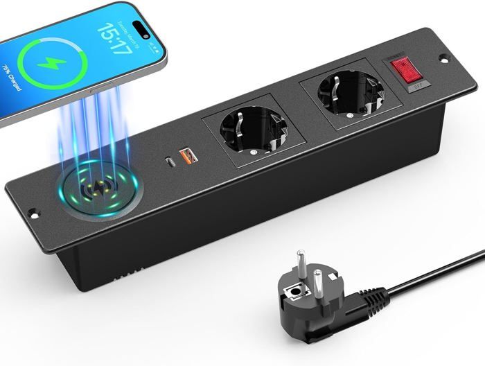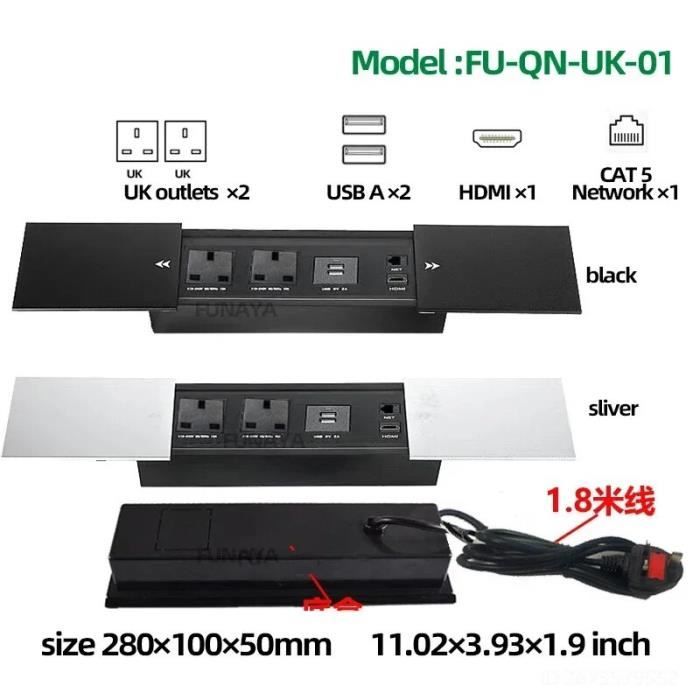 Boîte Sol Avec USB LAN HDMI Prise De Table Escamotable - Prise Pop-up - Prise De Sol Avec 2 EU Installation Professionnelle 250V 16A Il peut être installé sur les sols, les plans de travail et les ponts dans les cuisines, les salons, les bureaux, les espaces publics, etc., Installation : 1., Faites un trou de 10,43 L. Robuste et durable : sa coque est fabriquée en alliage d'aluminium massif, qui est très solide, résistant à l'usure, imperméable et ignifuge, offrant une bonne protection pour la prise interne. Tous les accessoires de montage., Remarques : 1., Veuillez noter que la double boîte de sol pop-up doit être installée par un professionnel qualifié., 2., Pour éviter le risque d'incendie, de choc et/ou de mort, éteignez l'alimentation sur le disjoncteur ou le fusible. Gain de place : lorsqu'il est fermé, la surface du panneau est presque affleurante avec le plateau de la table, ce qui n'affecte pas l'utilisation de l'espace de bureau. Emballage de protection : nous avons placé le produit dans un carton dur et rempli de mousse pour éviter les dommages pendant le transport. Apparence harmonieuse : avec une plaque argentée à la mode avec une finition mate, elle s'intègre facilement dans vos différents plans de travail et a l'air naturel et harmonieux. Lorsque vous ne l'utilisez pas, appuyez sur le couvercle vers le bas pour éviter que la poussière ne pénètre dans la prise. Description : Une fois que vous avez une boîte de sol pop-up dans votre maison, vos soucis concernant les accidents dangereux, tels que le contact accidentel avec les tout-petits et les chocs électriques causés par l'eau, disparaîtront de votre tête. Prise encastrable de table USB A C,prise encastrée à 2 voies,prise de Une structure compacte contient six prises différentes pour répondre à vos besoins d'alimentation de plusieurs appareils en même temps. Lorsque vous ne l'utilisez pas, appuyez sur le couvercle vers le bas pour éviter que la poussière ne pénètre dans la prise. [Apparence harmonieuse] : les panneaux argentés élégants avec une finition mate s'intègrent facilement dans vos différents plans de travail et ont un aspect naturel et harmonieux Vérifiez toujours si l'alimentation est coupée avant le câblage., 3., Cet appareil doit être installé et utilisé conformément aux codes électriques et réglementations correspondants. Coins arrondis : les coins arrondis et les bords lisses peuvent empêcher les rayures accidentelles des mains ou des pieds. Design bien pensé : la housse de protection peut être ouverte par le bouton sur le panneau pour empêcher efficacement les doigts des enfants ou les petits objets d'être introduits et éviter le risque de choc électrique. Puissance nominale : 2500 W Dimensions du colis : 28 x 14 x 8 cm/11 x 5,5 x 3,1 pouces Dimensions du produit : 26,5 x 11,8 x 6,7 cm., Poids brut : 1,3 kg., Poids net : 1,2 kg. Caractéristiques : Matériau : alliage d'aluminium Couleur : noir. Ne convient pas aux enfants de moins de 18 ans., 4., Veuillez noter qu'il convient aux sols secs d'une épaisseur de 2,76 pouces ou plus. Prise encastrable escamotable, plateau de table caché, multiprise avec 2 prises et 1 jeu de prises USB A C LAN HDMI, prise pop-up de bureau pour plan de travail, sol, cuisine, noir Marque : JINPRDAMZ 4600€ Prix le plus bas des 30 derniers jours 4,64 W sur le plateau de la table., 2., Insérez la prise dans le trou., 3., Fixez-le avec des vis et connectez l'énergie, terminez. Plusieurs prises : avec deux prises européennes standard 16 A, un ensemble de prises USB-A+C, une prise LAN et une prise HDMI, cette boîte de sol pop-up peut répondre à vos besoins quotidiens de vie et de travail.